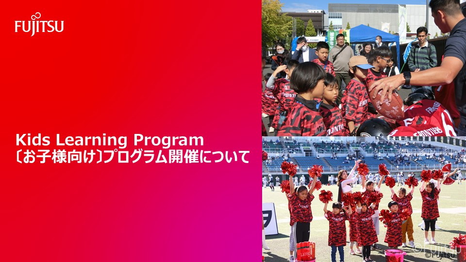 富士通フロンティアーズは、スポーツを”する・みる・ささえる“という観点から子どもたちの挑戦と学びを支援する「Kids Learning Program (アメフト編・チア編)」を開催します。