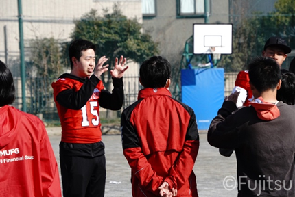 かわさきスポーツパートナー活動の一環として、富士通フロンティアーズでは、2010年から川崎市内の小学校に訪問し、体育の授業時間を利用してアメリカンフットボールの指導を行なっています。