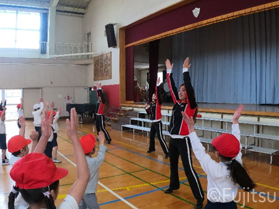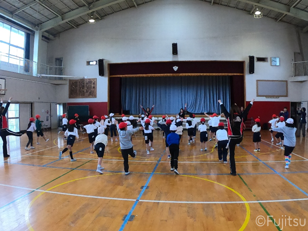 今回は、小学1年生約150名を対象に、体育の授業の一環としてリズムダンスを指導しました。