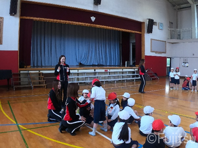 最後に記念撮影を行い授業が終わった後も、選手とハイタッチをし「試合見に行くねー!」と嬉しい声をたくさんいただきました。