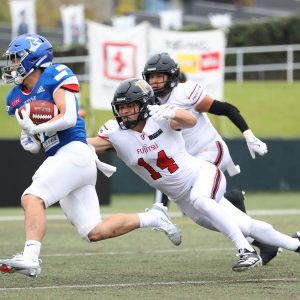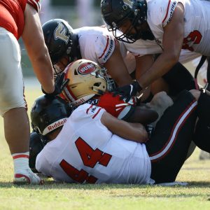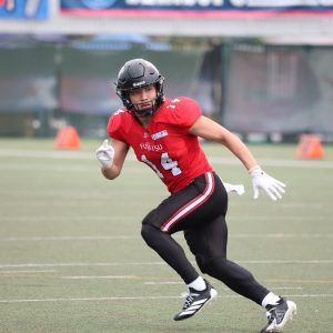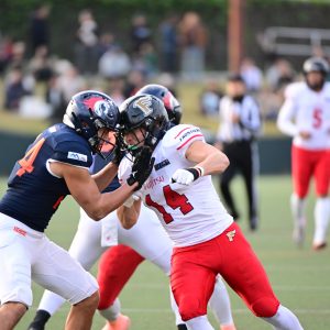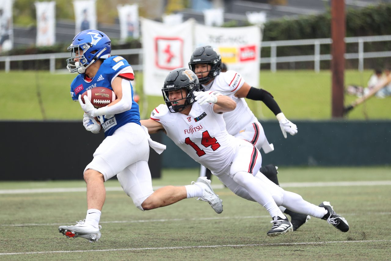 ディフェンスの最後尾のセーフティ。ビッグブルー戦でスターターを務め、存在感を示したのが2年目のDB#14高口です。1Qからパスカットを決め、2Qにはファンブルフ…