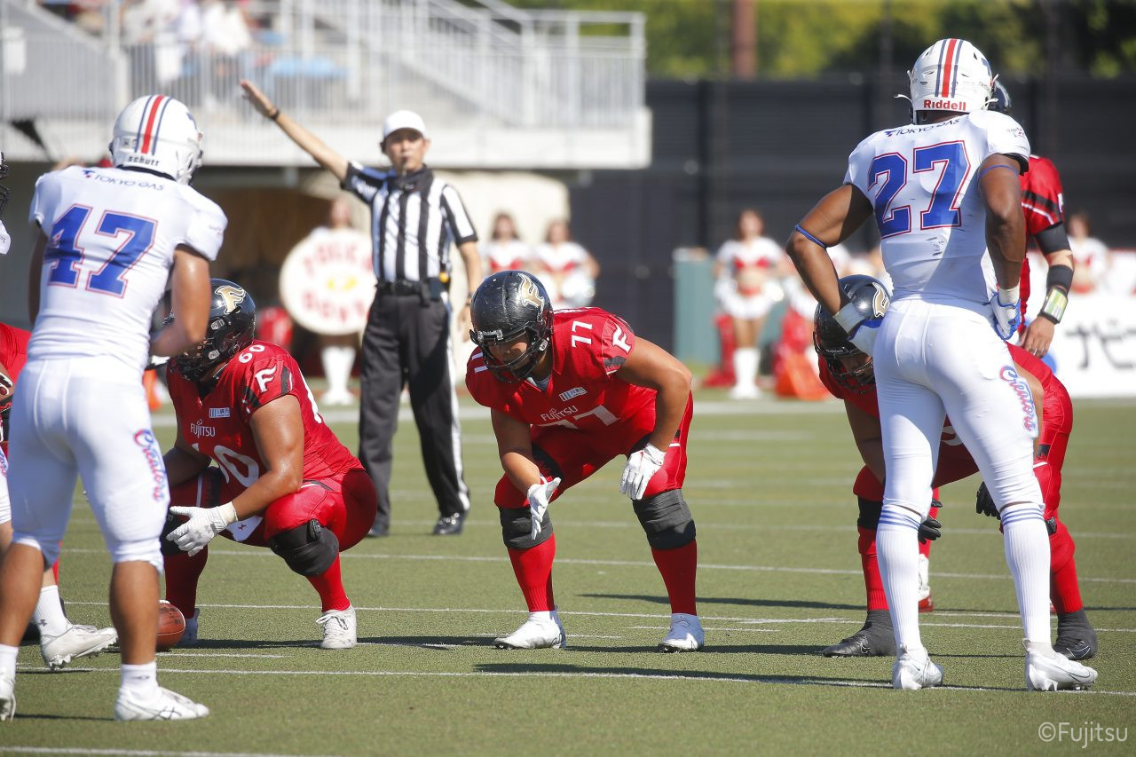 クリエイターズ戦で4年ぶりにスターターを務めたOL#77張リャンユッ。オープニングシリーズの1プレー目で58ヤードのビッグゲインが決まり、リズムに乗れたと試合を…