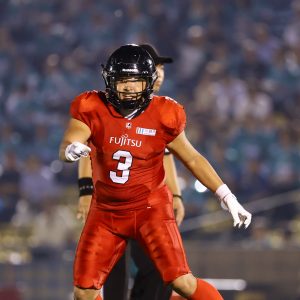 LBはタックルすることはもちろんのこと、パスカバーをしないといけないのが難しいです。