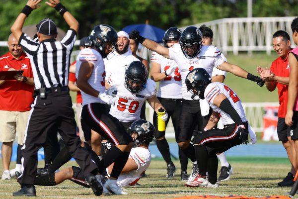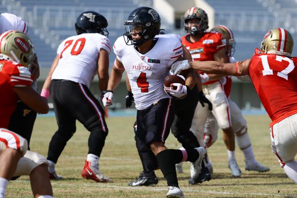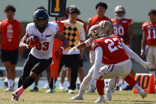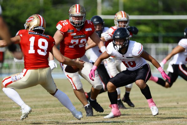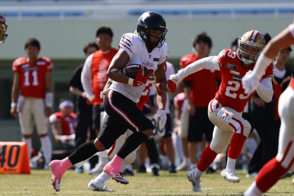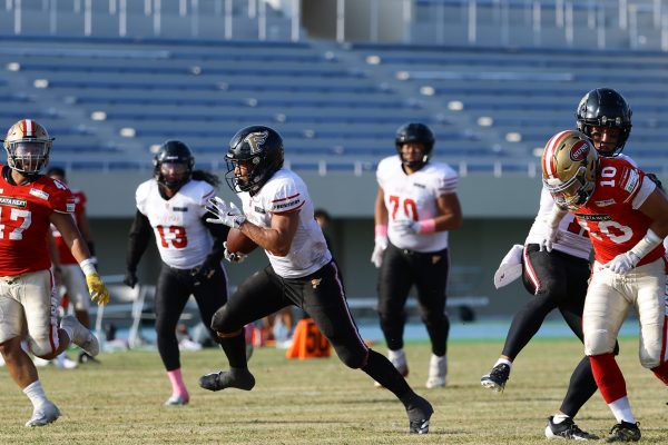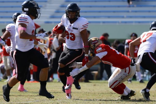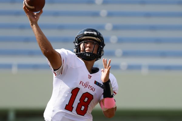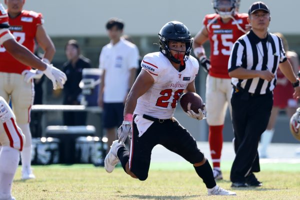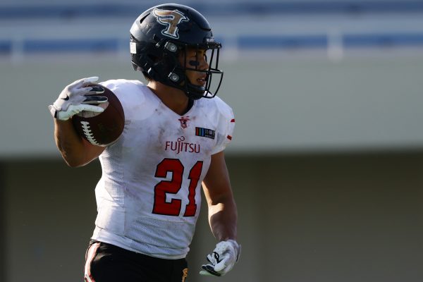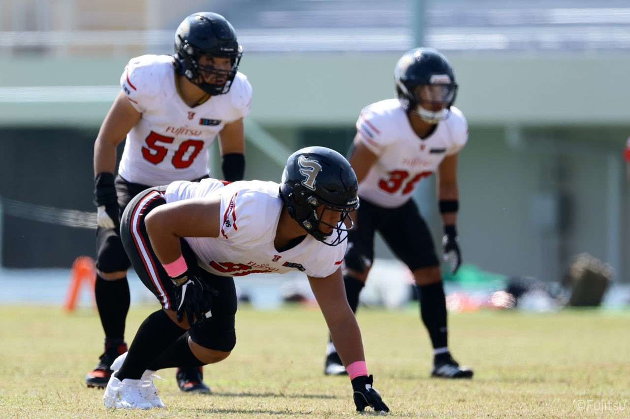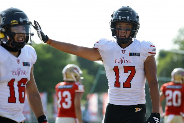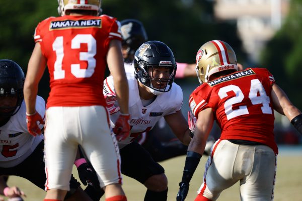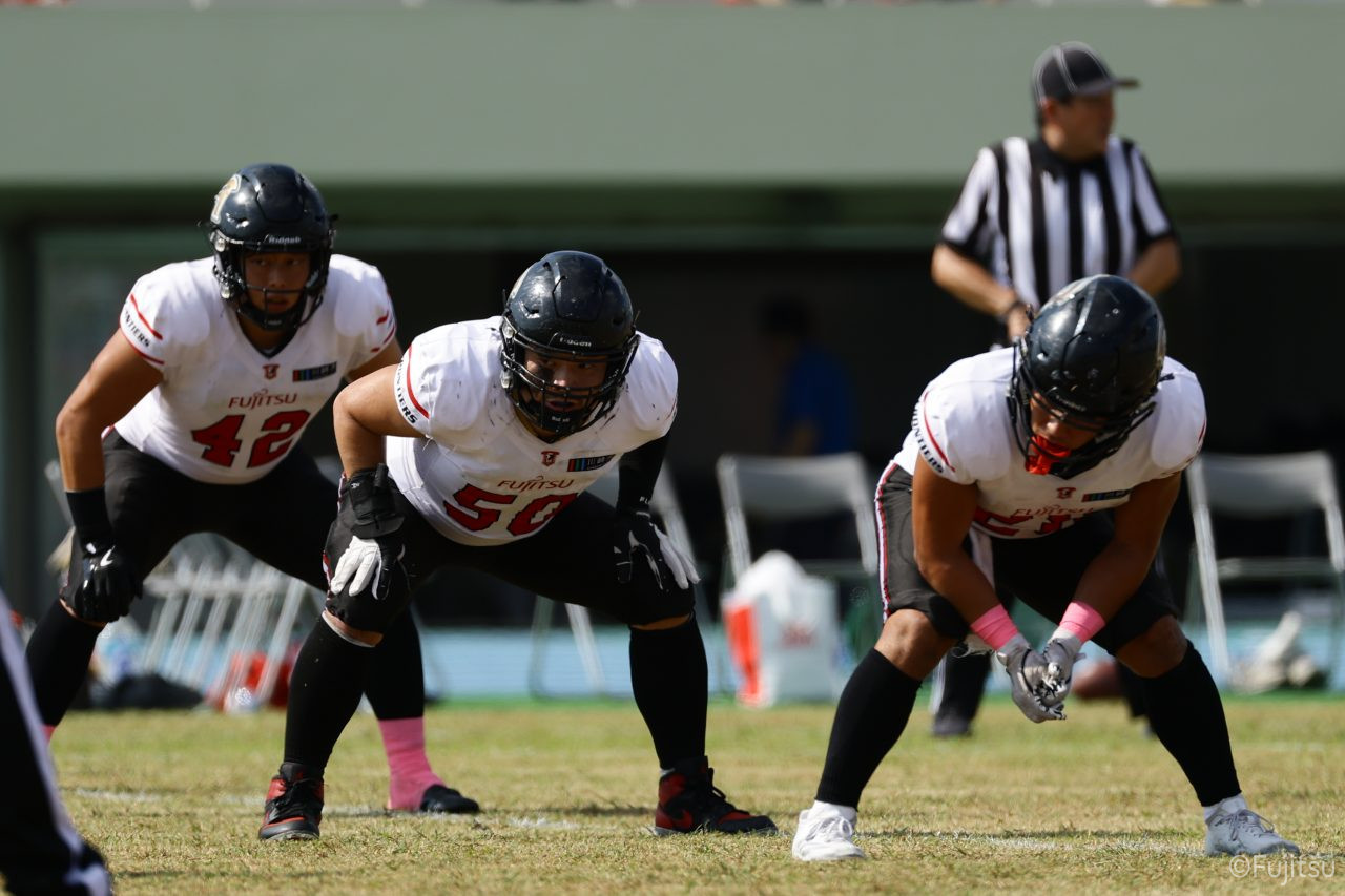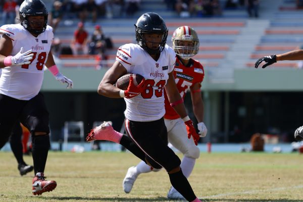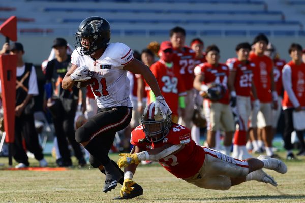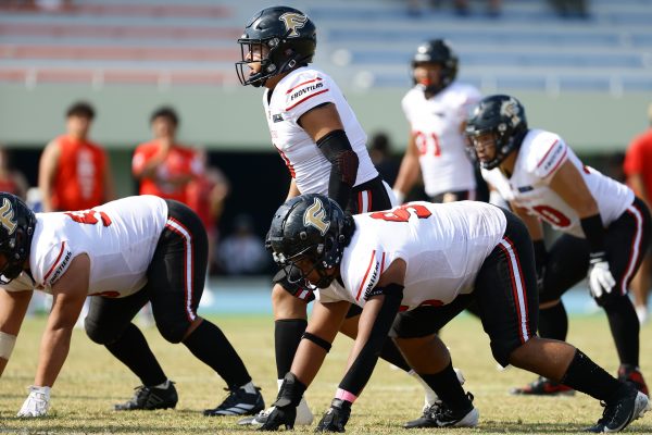 試合開始直後から爆発的な攻撃力を見せつけた。RB(ランニングバック)#21三宅の13yランとWR(ワイドレシーバー)#83柴田の53yのランアフターキャッチでいきなりゴール前7yまで進むと、最後はRB#21三宅が押し込みタッチダウン。7-0と先制点を奪う。その後もQB(クォーターバック)#18高木からWR#17糸川幹への21y、WR#10サマジーへのそれぞれタッチダウンパスを通し、全く手を緩めることはなく、21-0で1Qを終える。