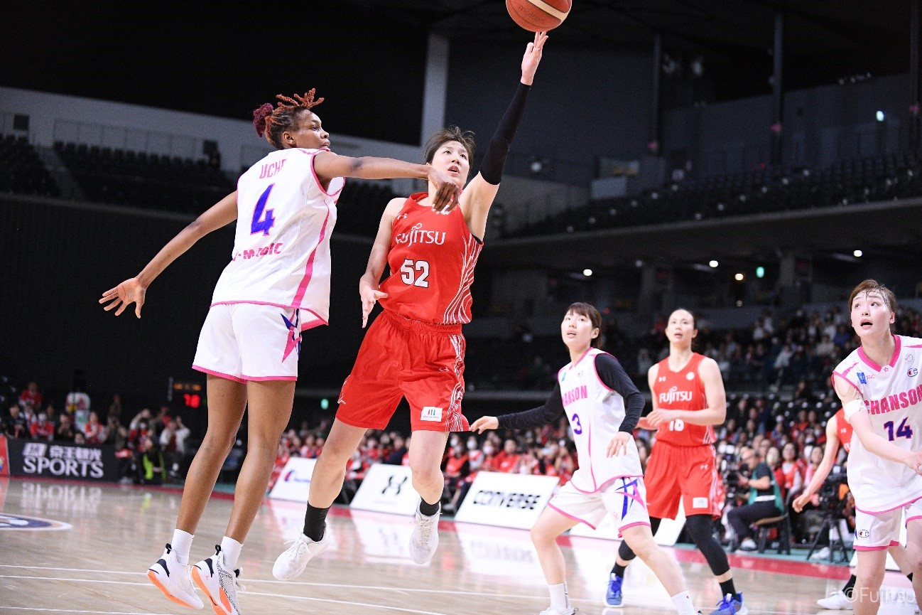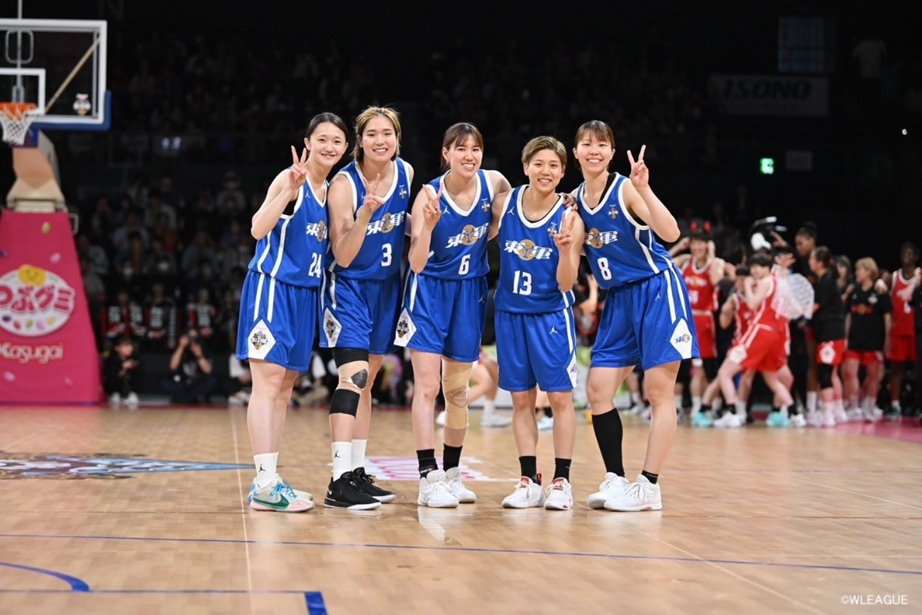 テミの高さやカリンの3Pシュートで開始からチームを勢いづけ、途中出場のサオリもドライブから得点を決めるなど、それぞれ得意とするプレーで活躍!
