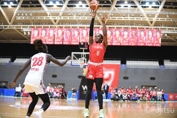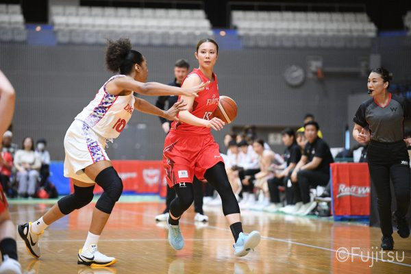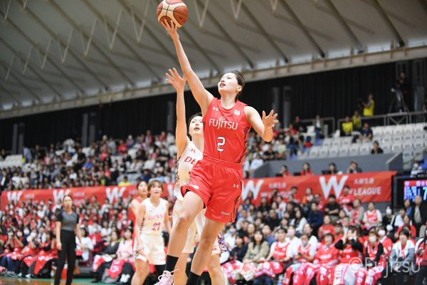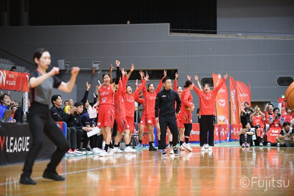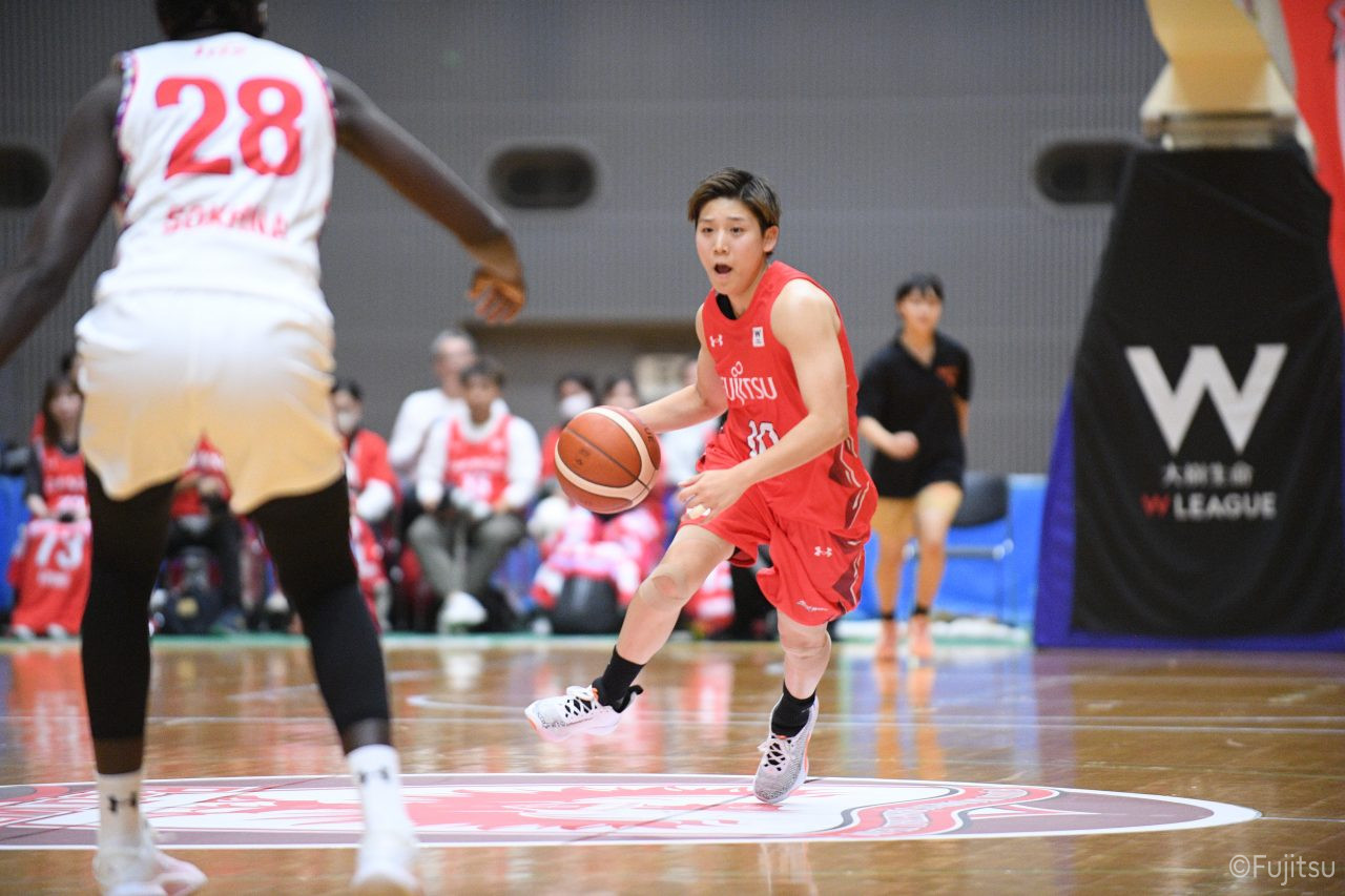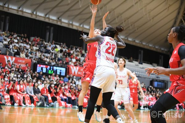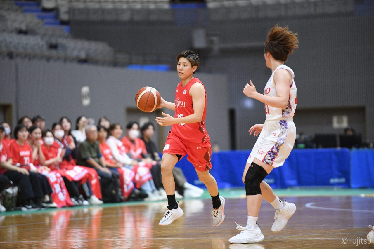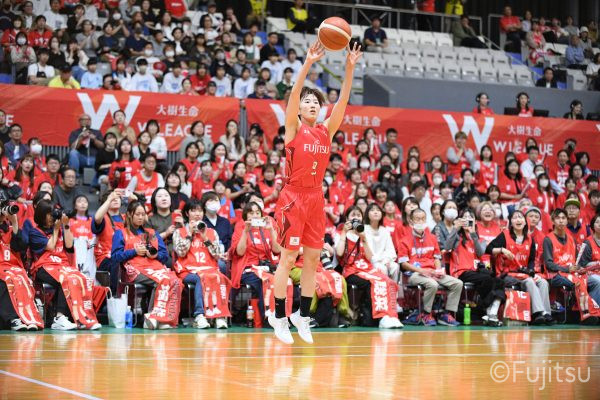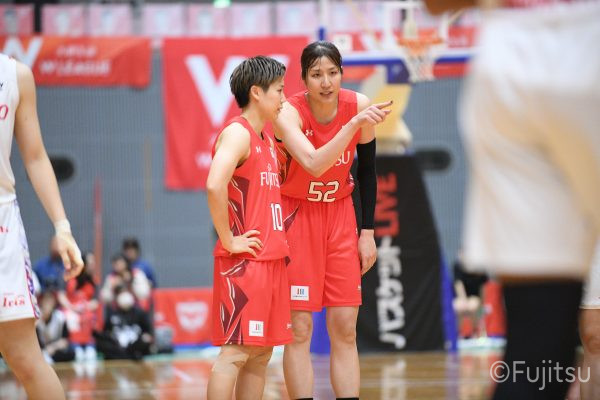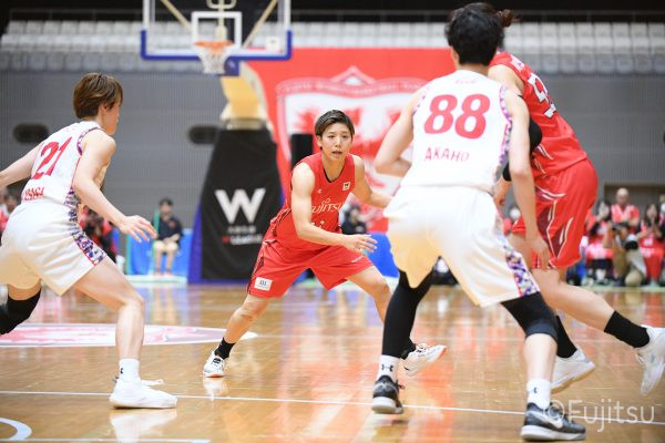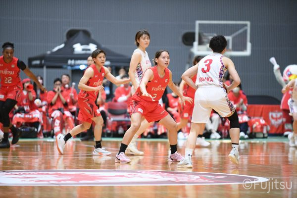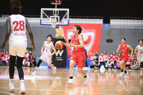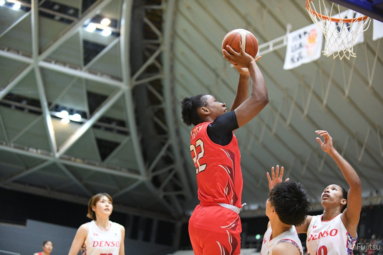 第3Qも失点からスタートするが、#11前澤のフリースローや#52宮澤のバスケットカウントなどで押し返していく。デンソーの攻撃に失点もするが、#11前澤のバックカットに#52宮澤がパスを通して、それがバスケットカウントとなり、チームに流れを呼び込む。中盤には#10町田のパスを受けた#7林(咲)が3ポイントシュートを沈め、その#10町田のジャンプシュートと、#22エブリンのシュートも決まって、リードを二桁に広げる。その後も#22エブリンのリバウンドシュートや、#52宮澤、#9赤木、#10町田の3連続3ポイントシュートが決まる。終盤に3連続失点し、さらにピンチも招くが、最後は#18藤本が相手のボールに反応して得点を許さず、65-52で第3Qを終える。