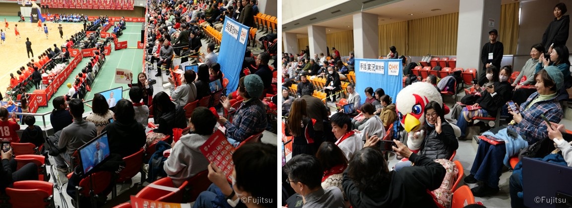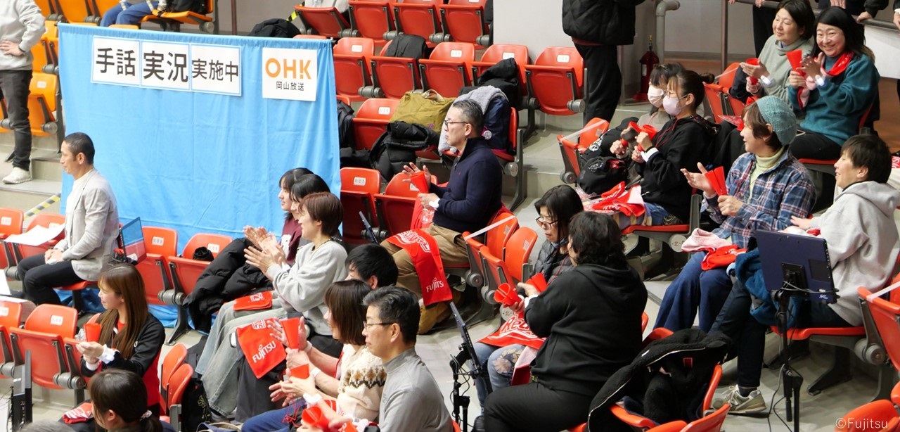 イベントの参加者だけではなく、会場のファンの皆さんも一体となって「富士通レッドウェーブ」の手話を楽しみながら、試合を盛り上げてくれました。