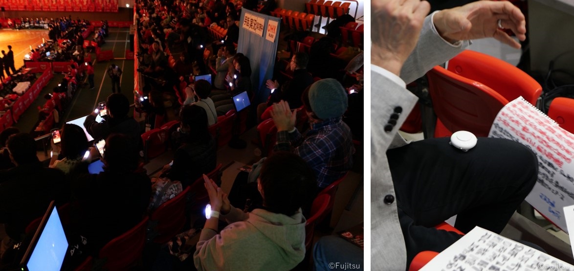 さらに、音を振動と光で感じるOntennaを参加者の方に身に着けて応援していただきました。