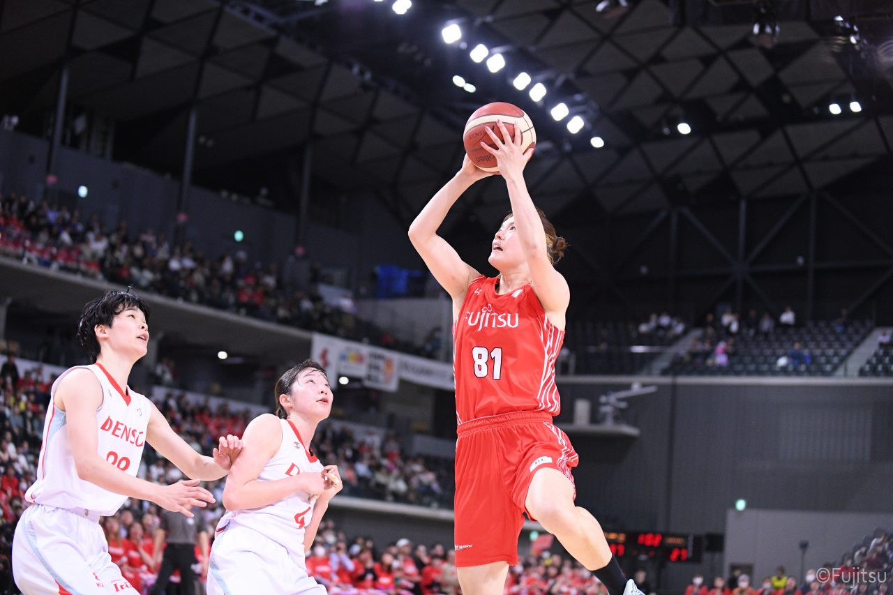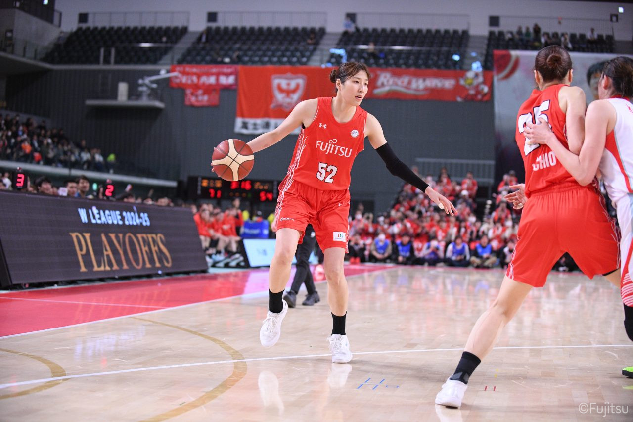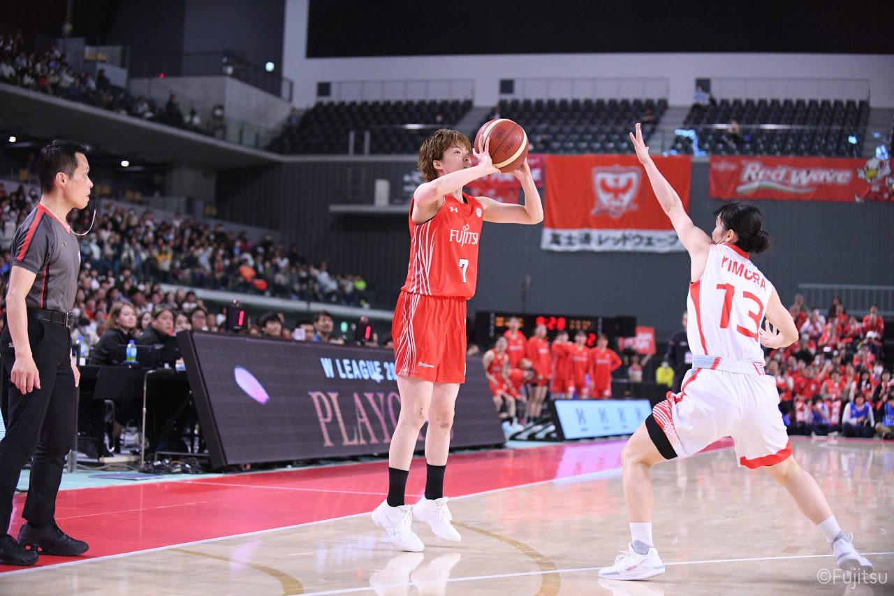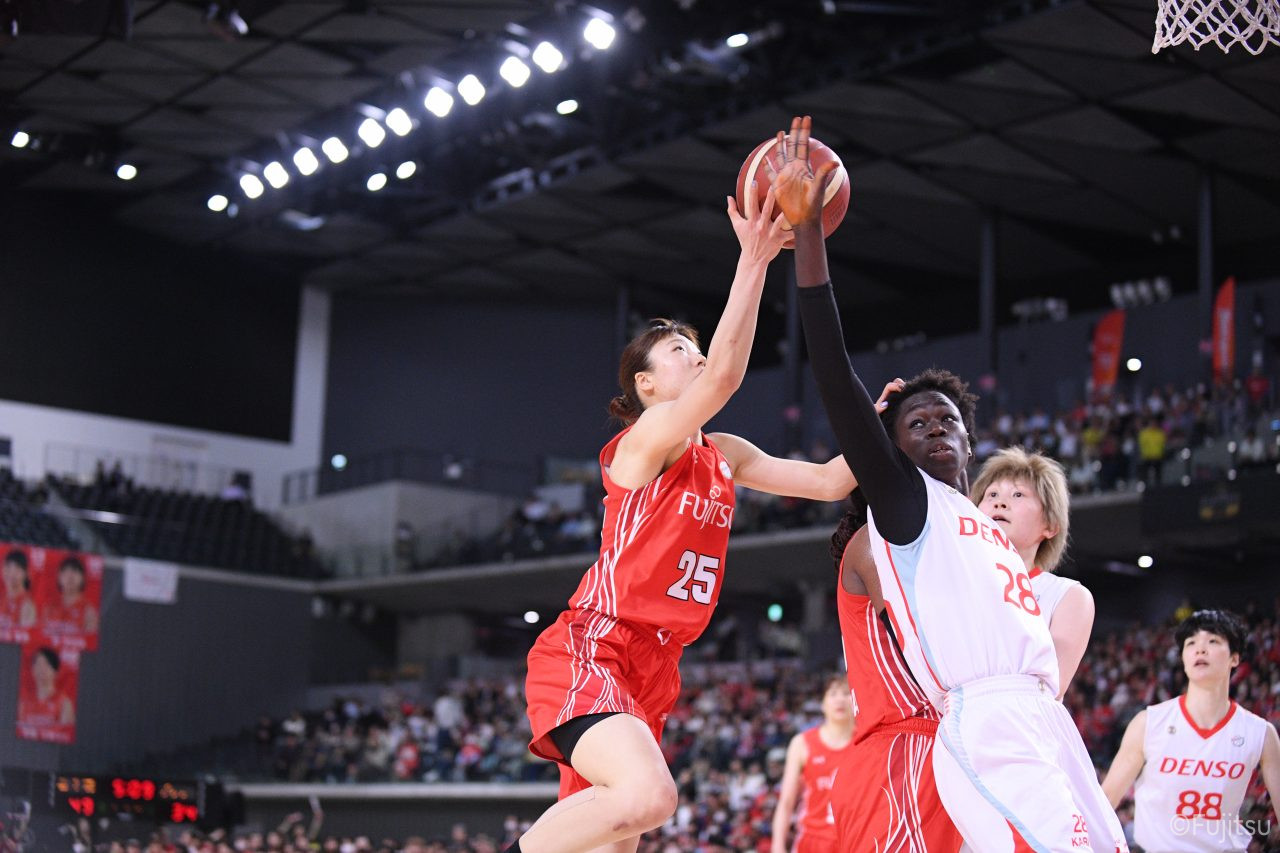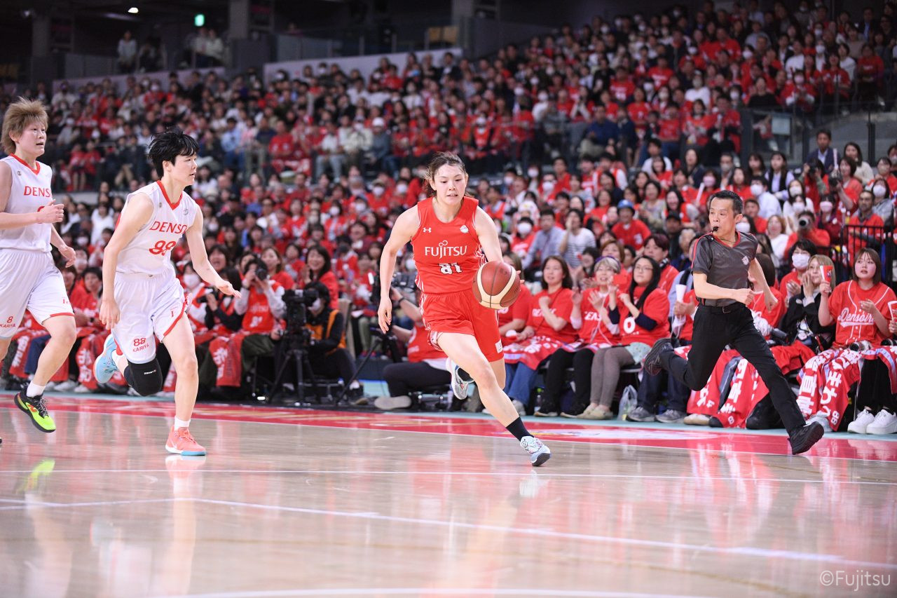 対戦成績を2勝2敗のタイに戻し、迎えたデンソーとのファイナル最終第5戦。レッドウェーブのスタメンは#8テミトペ、#9 赤木、#10町田、#25内尾、#52宮澤。#8テミトペのシュートで先制すると、#9赤木のバスケットカウント、#10町田の3ポイントシュートで立ち上がりの主導権を渡さない。その後も#10町田によるスティールからの速攻とドライブ、#7林のジャンプシュート、#25内尾のバスケットカウントでリードを広げていく。#81宮下のフリースローなどでリードを9点差にまで広げるが、終盤に3連続失点で詰め寄られて、20-18で第1Qを終える。