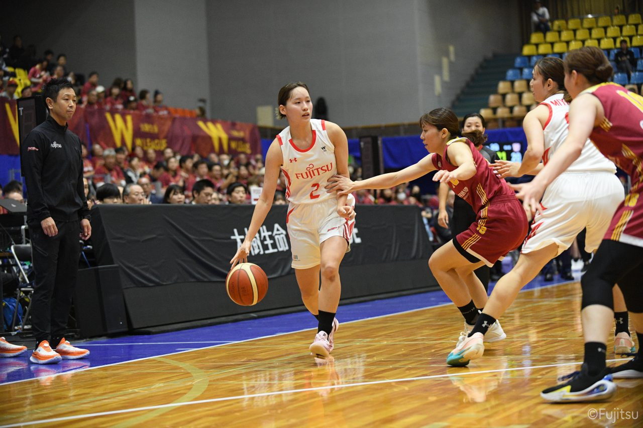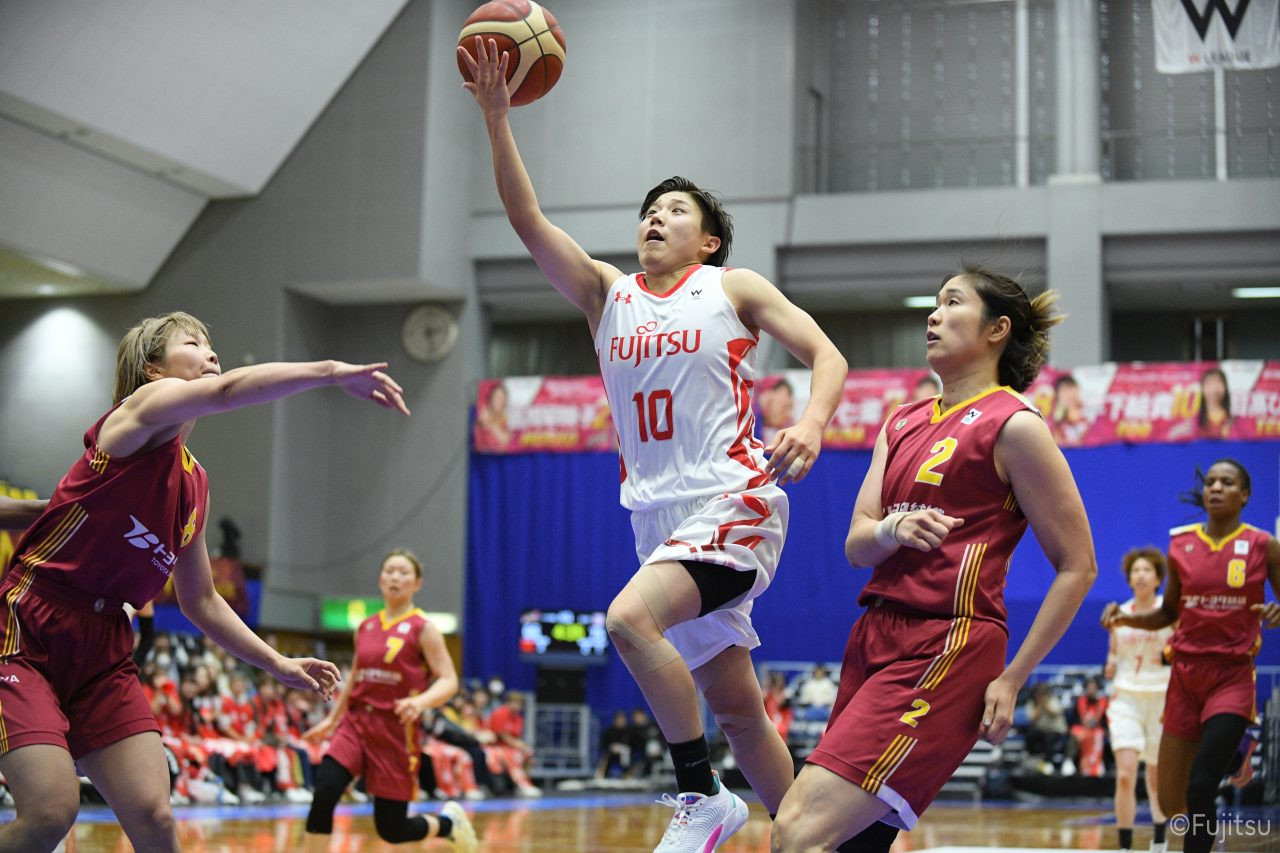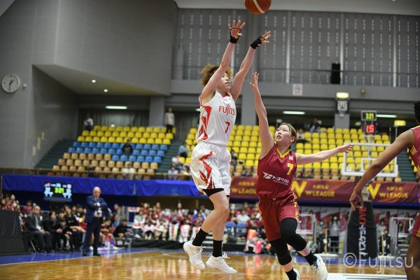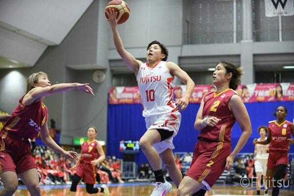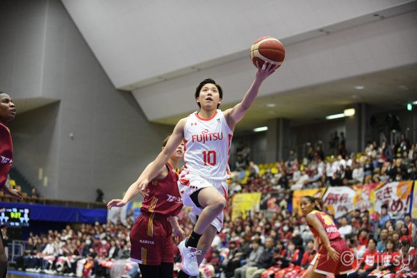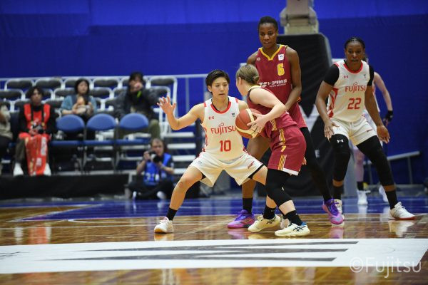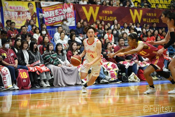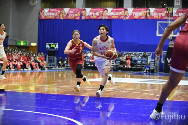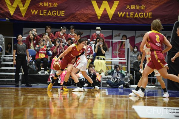 失点からスタートするが、#10町田が3ポイントシュートで返すと、次の失点には#9赤木のドライブと#52宮澤の3ポイントシュートの連続得点で返し、トヨタ紡織にタイムアウトを取らせる。その後もトヨタ紡織の3ポイントシュートに苦しめられ、なかなか抜け出せない状況は続くが、ここでも#10町田が起点となり、#8テミトペ、#22エブリンに、さらに#0山田のシュートを3連続アシスト。次のオフェンスでは自らジャンプシュートも決める。終盤に入っても#10町田を起点としたプレーが続き、ラスト3分は#22エブリンのバスケットカウントや#11前澤のジャンプシュートなどで3連続得点。第3Qを65-55で終える。