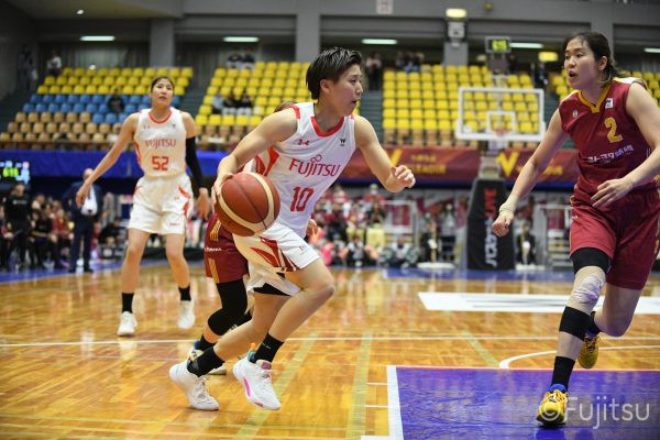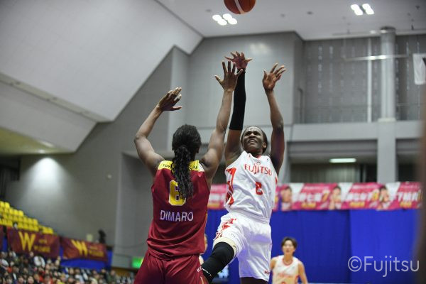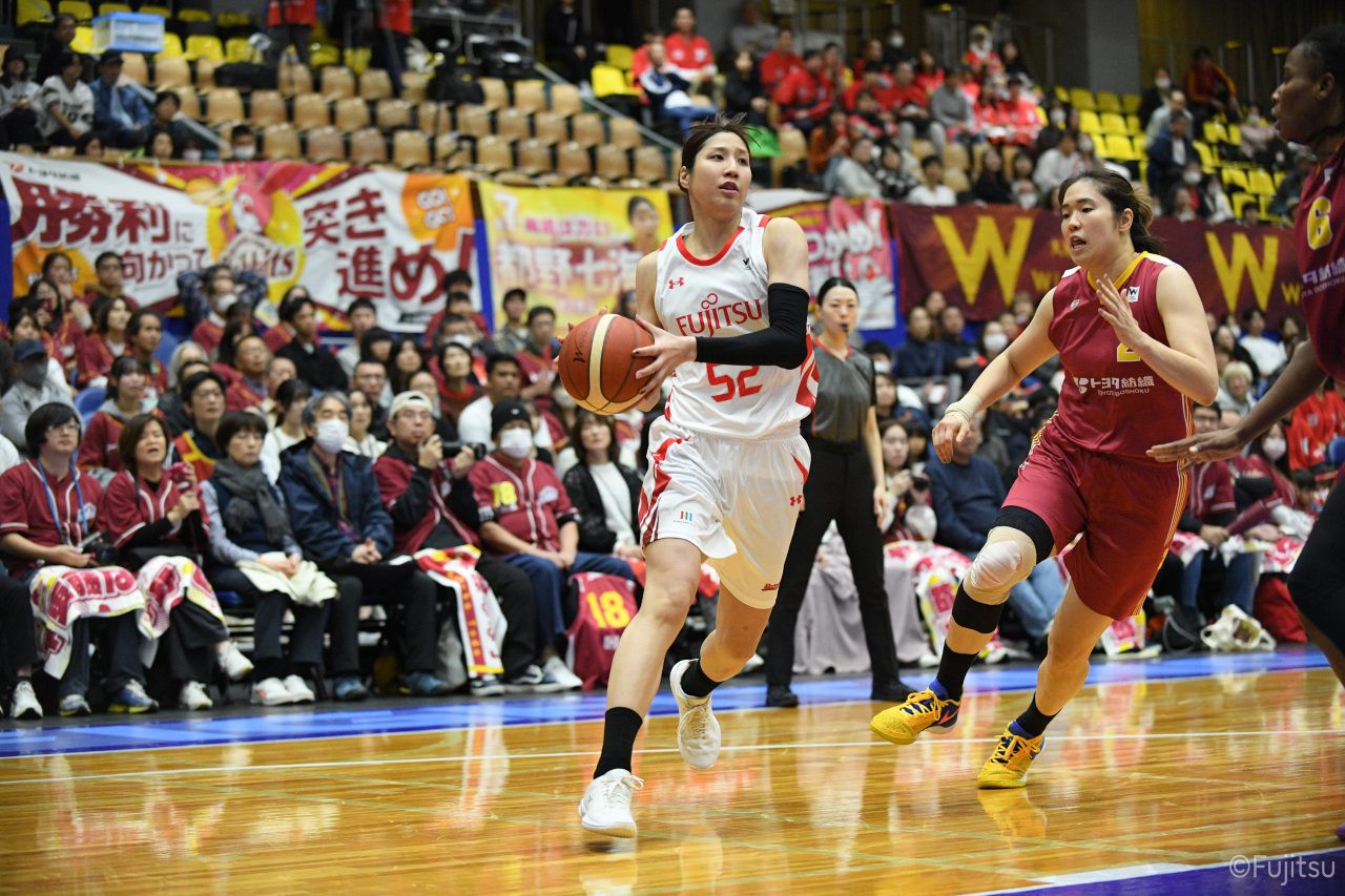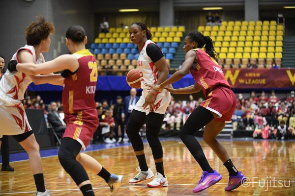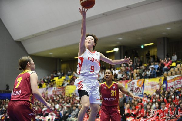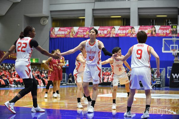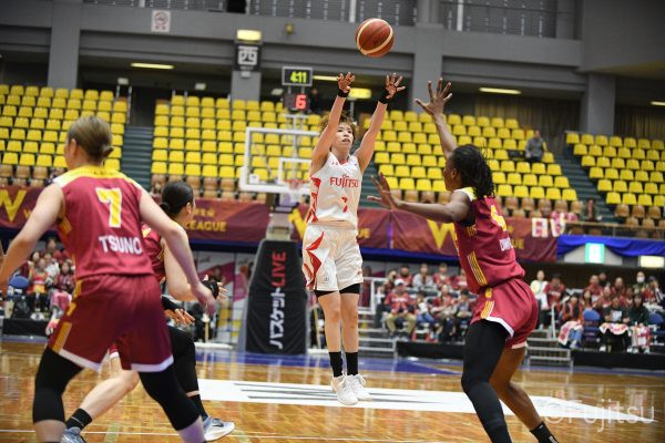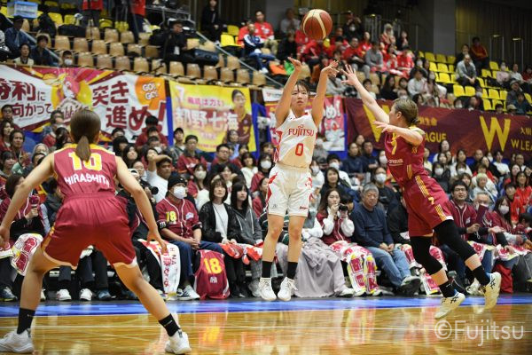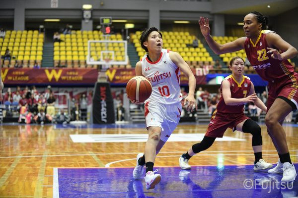 失点からスタートするが、#10町田が3ポイントシュートで返すと、次の失点には#9赤木のドライブと#52宮澤の3ポイントシュートの連続得点で返し、トヨタ紡織にタイムアウトを取らせる。その後もトヨタ紡織の3ポイントシュートに苦しめられ、なかなか抜け出せない状況は続くが、ここでも#10町田が起点となり、#8テミトペ、#22エブリンに、さらに#0山田のシュートを3連続アシスト。次のオフェンスでは自らジャンプシュートも決める。終盤に入っても#10町田を起点としたプレーが続き、ラスト3分は#22エブリンのバスケットカウントや#11前澤のジャンプシュートなどで3連続得点。第3Qを65-55で終える。