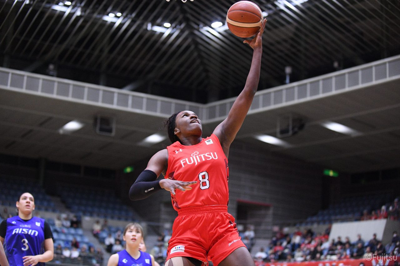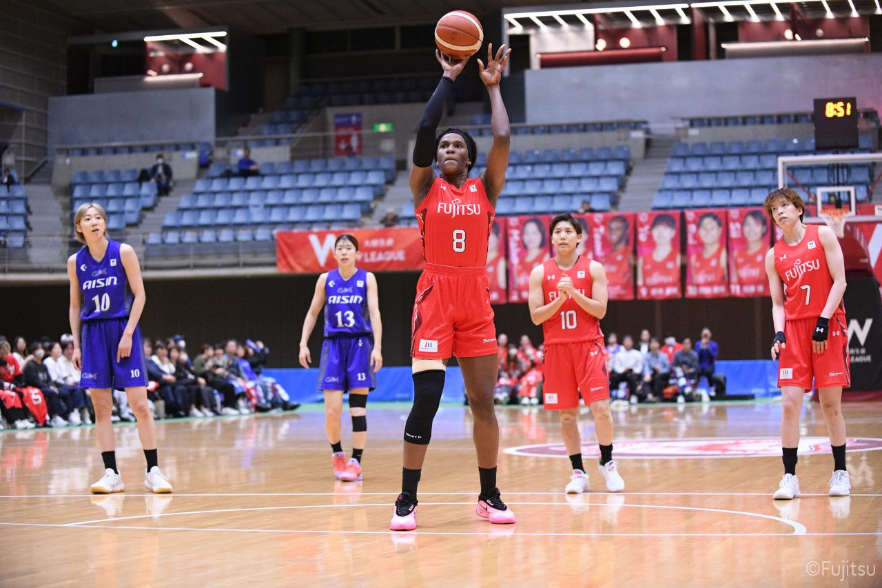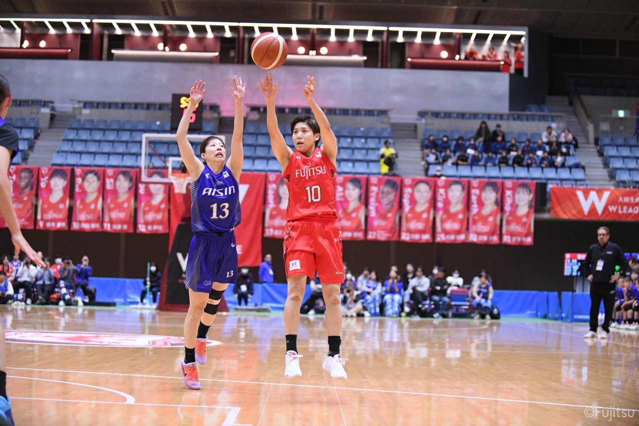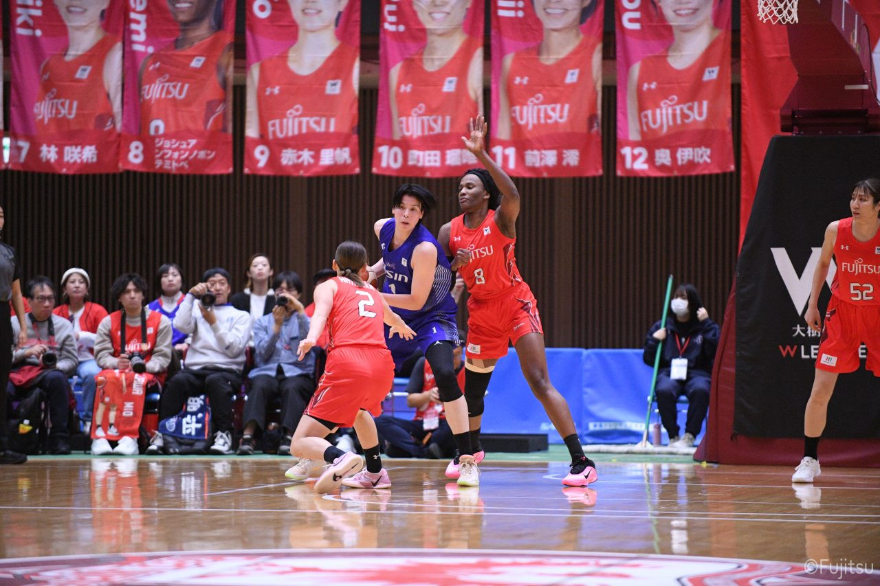 ホーム・東急ドレッセとどろきアリーナでの今シーズン初戦はアイシンと対戦。レッドウェーブのスタメンは#7林(咲)、#8テミトペ、#9赤木、#10町田、#52宮澤。立ち上がりから失点し0-4からのスタートになる。それでも#10町田から#9赤木につながる速攻や、#81宮下の3ポイントシュートなどで同点に追いつくと、#8テミトペの3ポイントシュート、#10町田のジャンプシュートで逆転する。再逆転を許し、追いかける展開となるが、#8テミトペのゴール下や#10町田の3ポイントシュートなどで同点に追いつく。#22エブリンのフリースローで逆転するが、終盤に連続失点し、20-23で第1Qを終える。