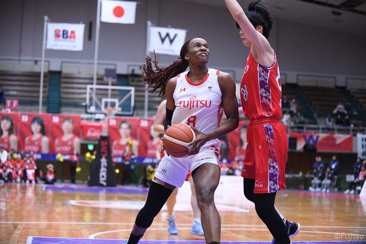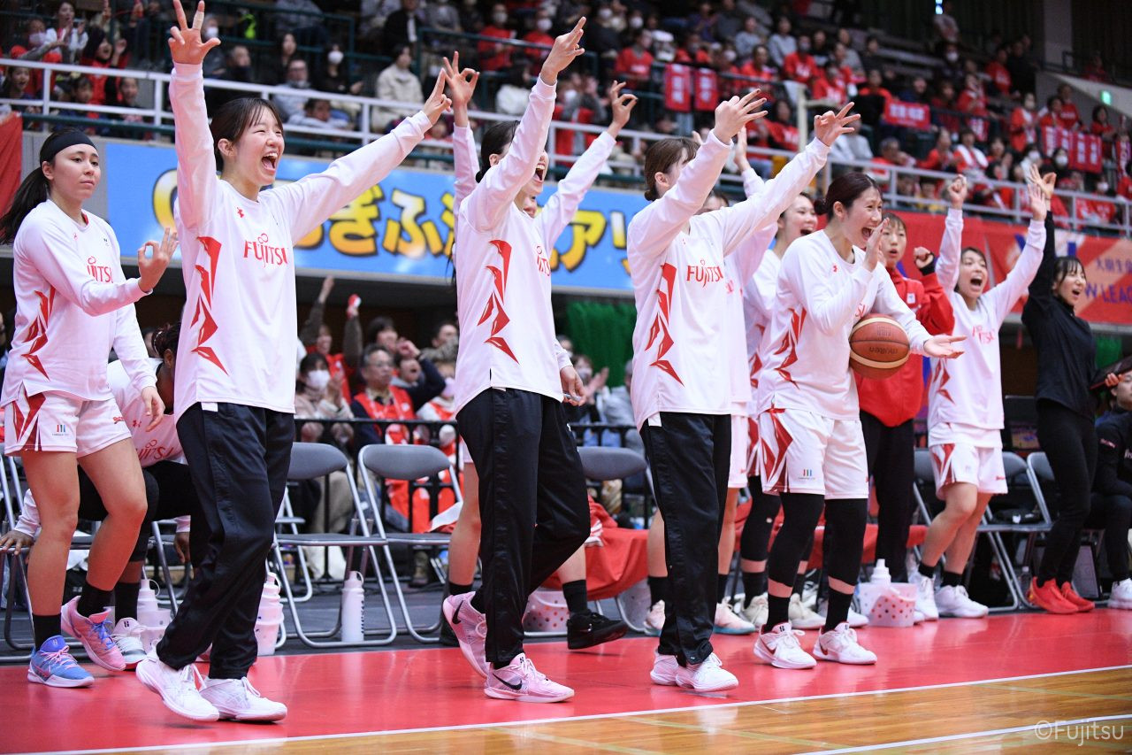 #7林(咲)の3ポイントシュートで後半をスタートさせると、#8テミトペはジャンプシュートで、#52宮澤は3ポイントシュートで続き、リードを二桁に広げる。その後は失点しながらも、#7林(咲)が速攻から3ポイントシュートを沈めると、#8テミトペはリバウンドシュートを、#11前澤はスローインプレーからバスケットカウントを決める。最大得点差となる12点にまでリードを広げるが、ここから連続でバスケットカウントを決められ、さらにターンオーバーから失点し、6点差にまで縮められる。それでも終盤、#22エブリンがフリースローを確実に沈め、#81宮下のパスを受けた#11前澤もシュートを決めて、45-38で第3Qを終える。