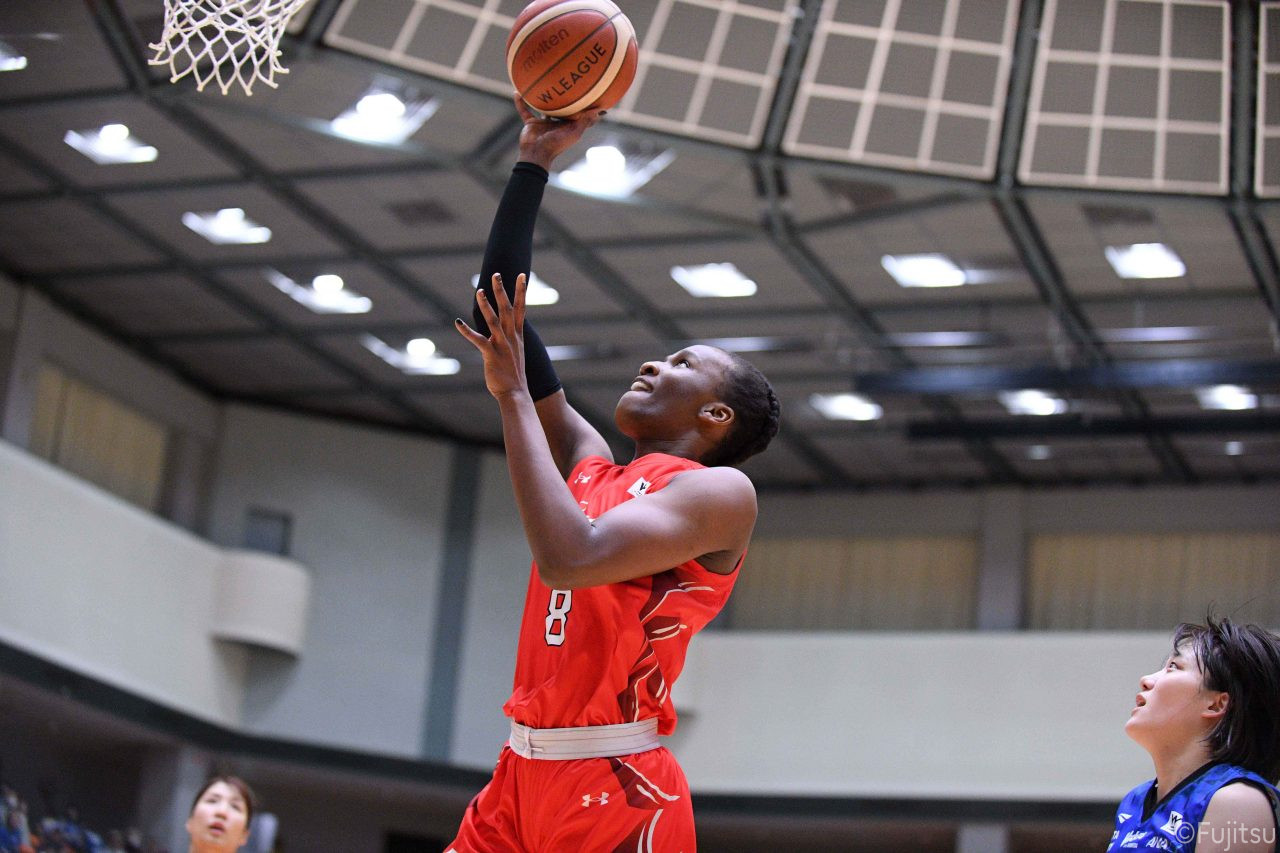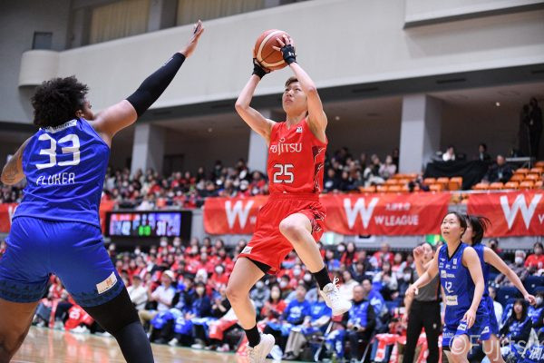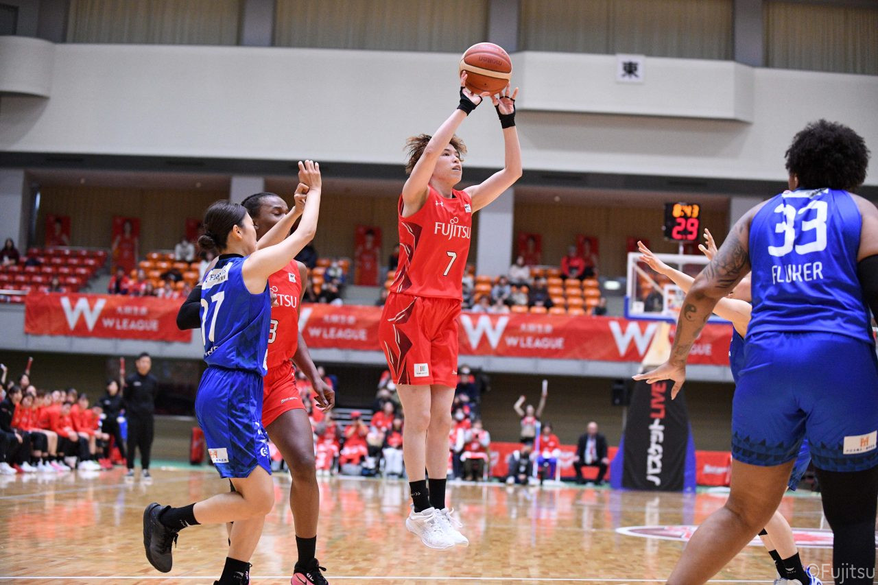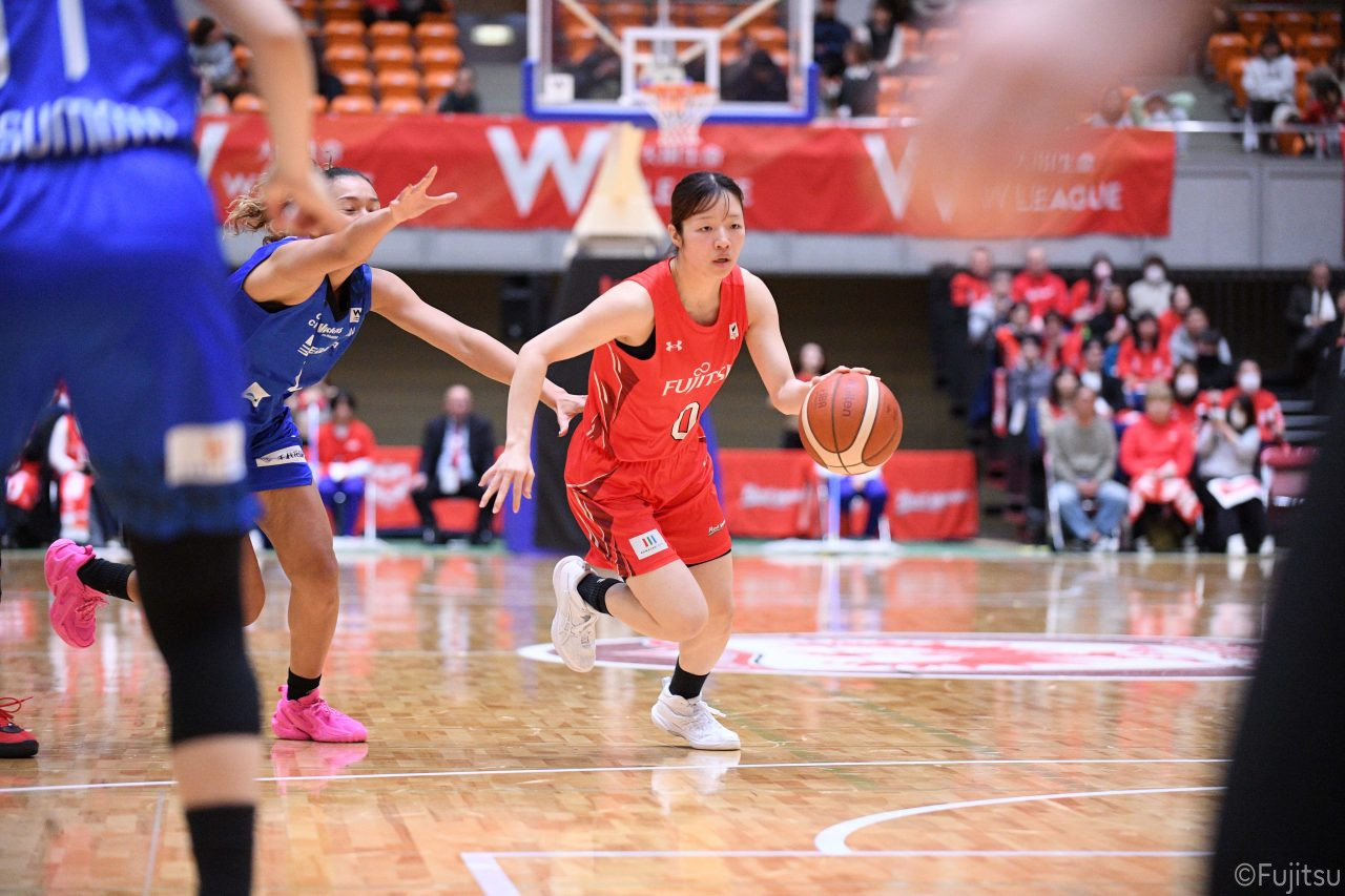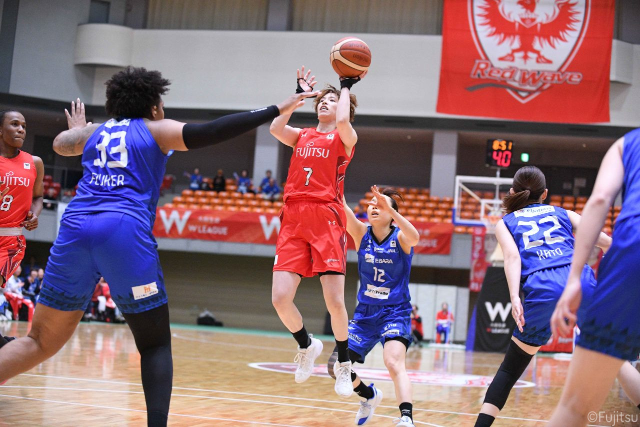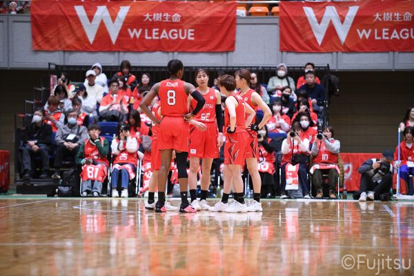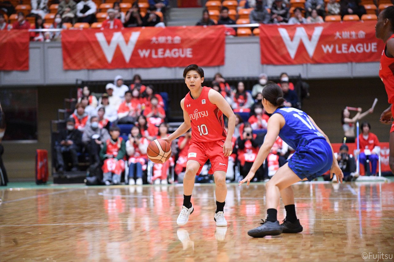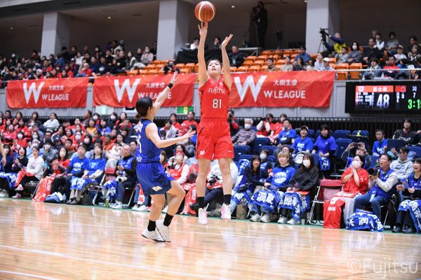 Wリーグ・レギュラーシーズン再開のゲームは平塚で東京羽田と対戦。スタメンは#7林(咲)、#8テミトペ、#10町田、#25内尾、#52宮澤。#7林(咲)のジャンプシュートで先制すると、#8テミトペが続く。東京羽田に粘り強くついて来られるが、#10町田のジャンプシュートや、#7林(咲)と#52宮澤の3ポイントシュートなどでリードを少しずつ広げる。さらに#25内尾の合わせや、#9赤木のジャンプシュートも決まって、東京羽田にタイムアウトを取らせる。終盤、失点するシーンもあったが、#2林(真)の3ポイントシュートと、#81宮下から#22エブリンにつながるプレーで得点し、23-15で第1Qを終える。