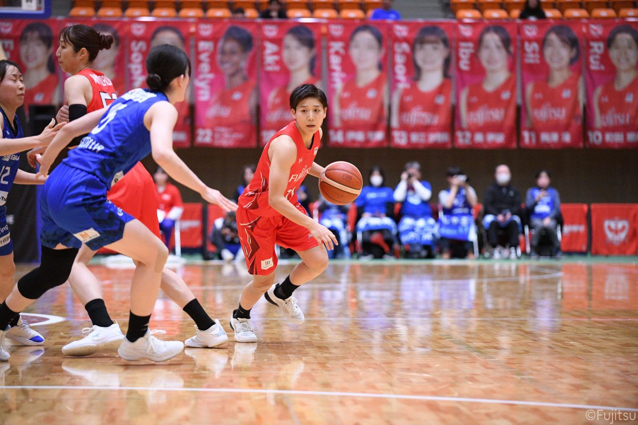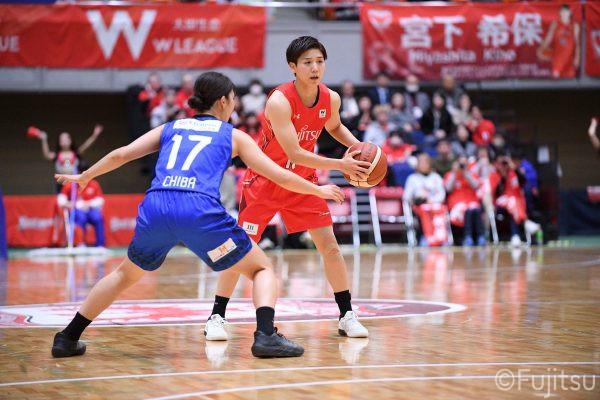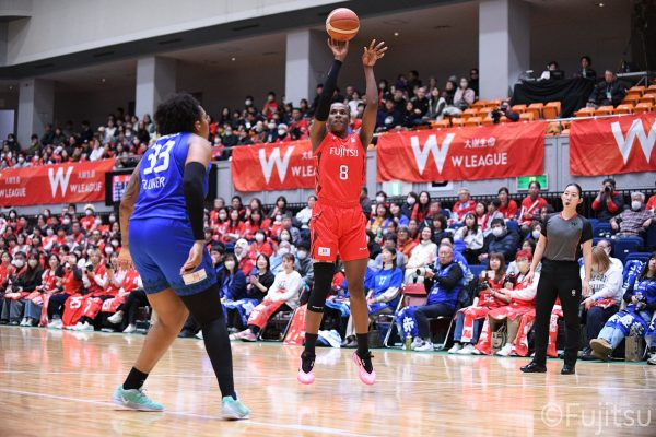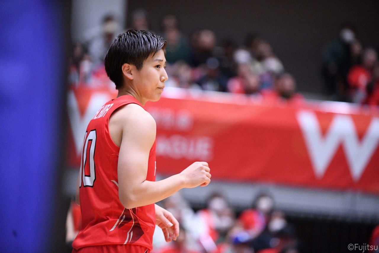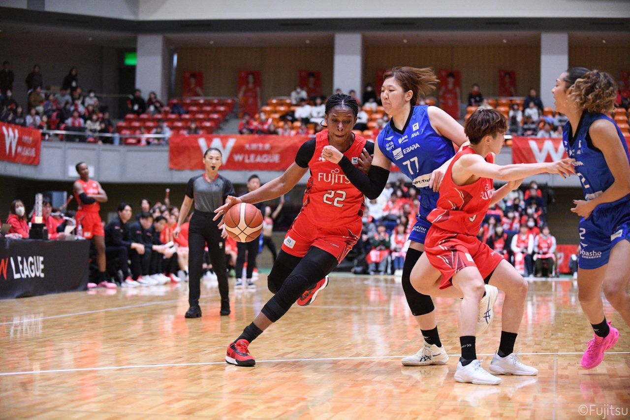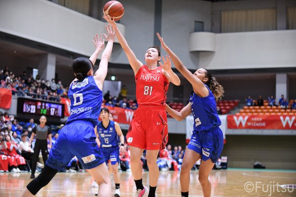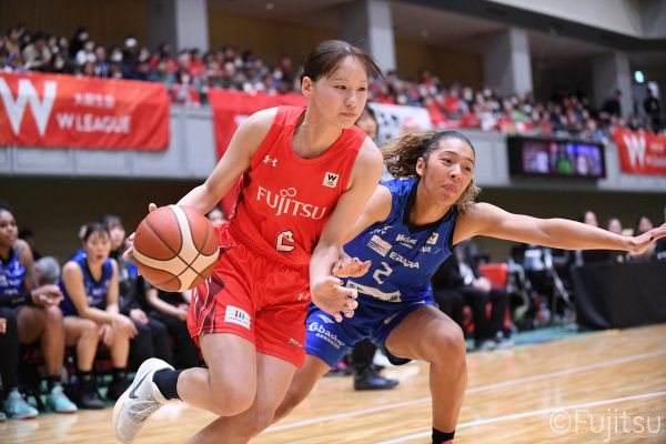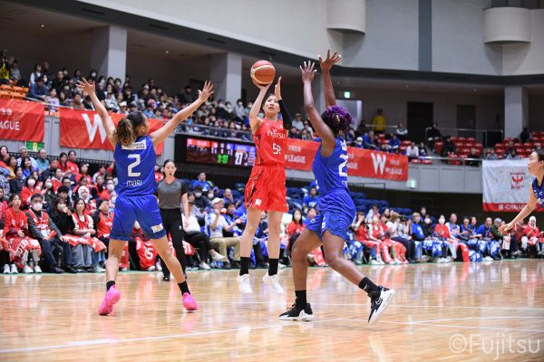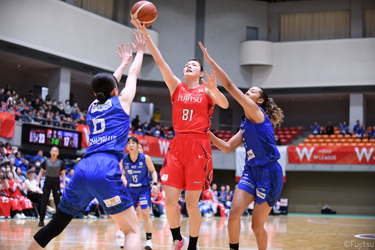 Wリーグ・レギュラーシーズン再開のゲームは平塚で東京羽田と対戦。スタメンは#7林(咲)、#8テミトペ、#10町田、#25内尾、#52宮澤。#7林(咲)のジャンプシュートで先制すると、#8テミトペが続く。東京羽田に粘り強くついて来られるが、#10町田のジャンプシュートや、#7林(咲)と#52宮澤の3ポイントシュートなどでリードを少しずつ広げる。さらに#25内尾の合わせや、#9赤木のジャンプシュートも決まって、東京羽田にタイムアウトを取らせる。終盤、失点するシーンもあったが、#2林(真)の3ポイントシュートと、#81宮下から#22エブリンにつながるプレーで得点し、23-15で第1Qを終える。
