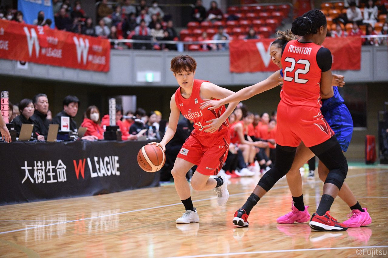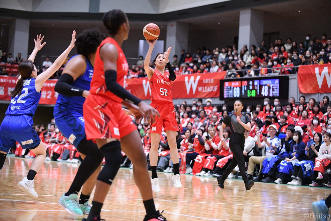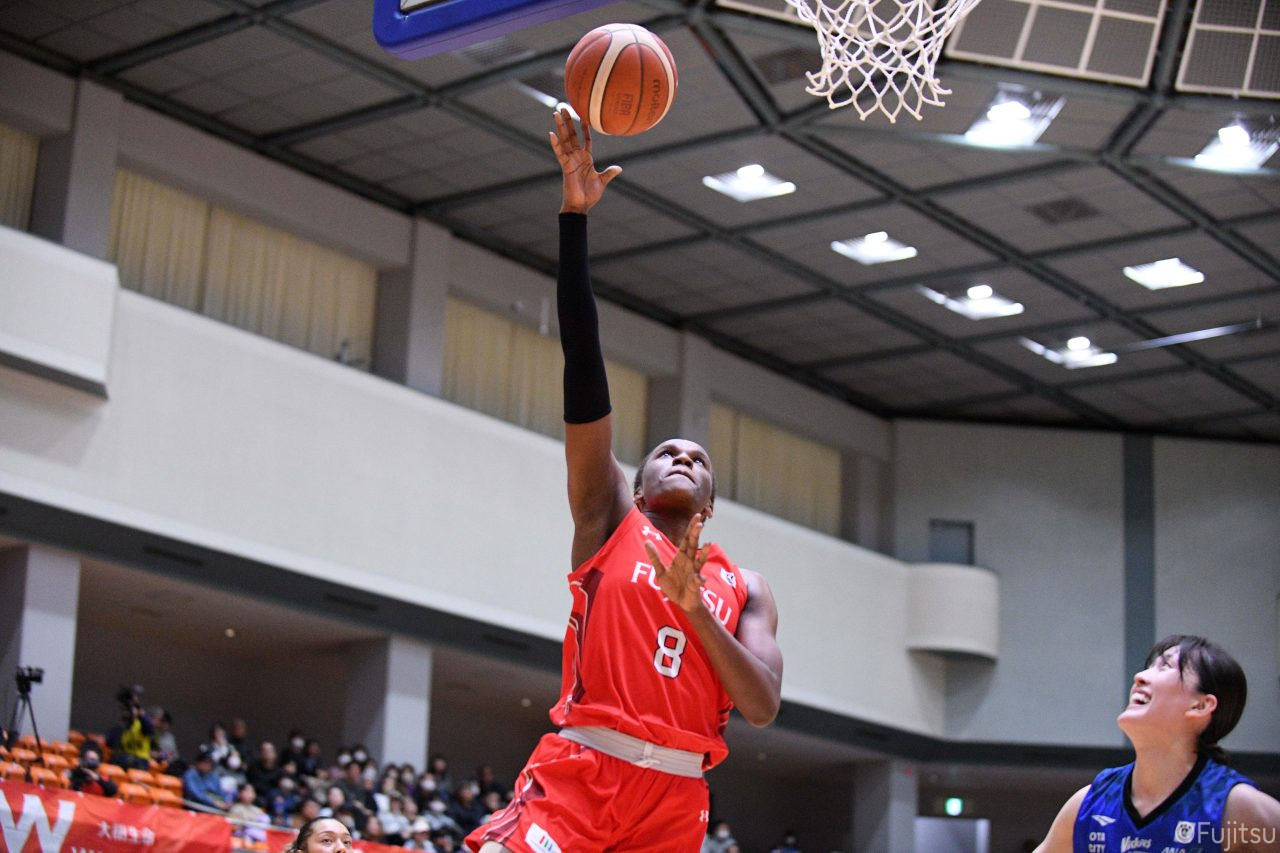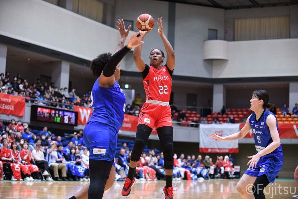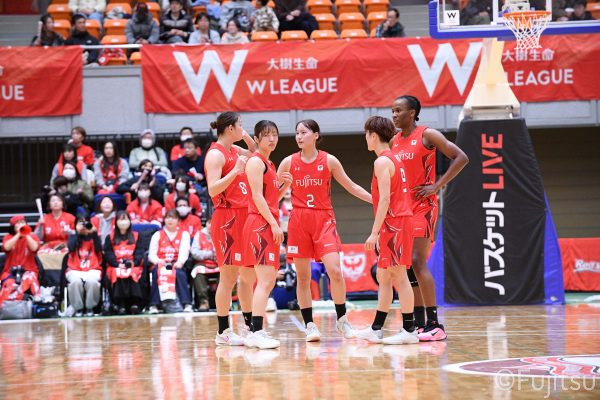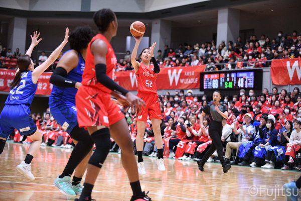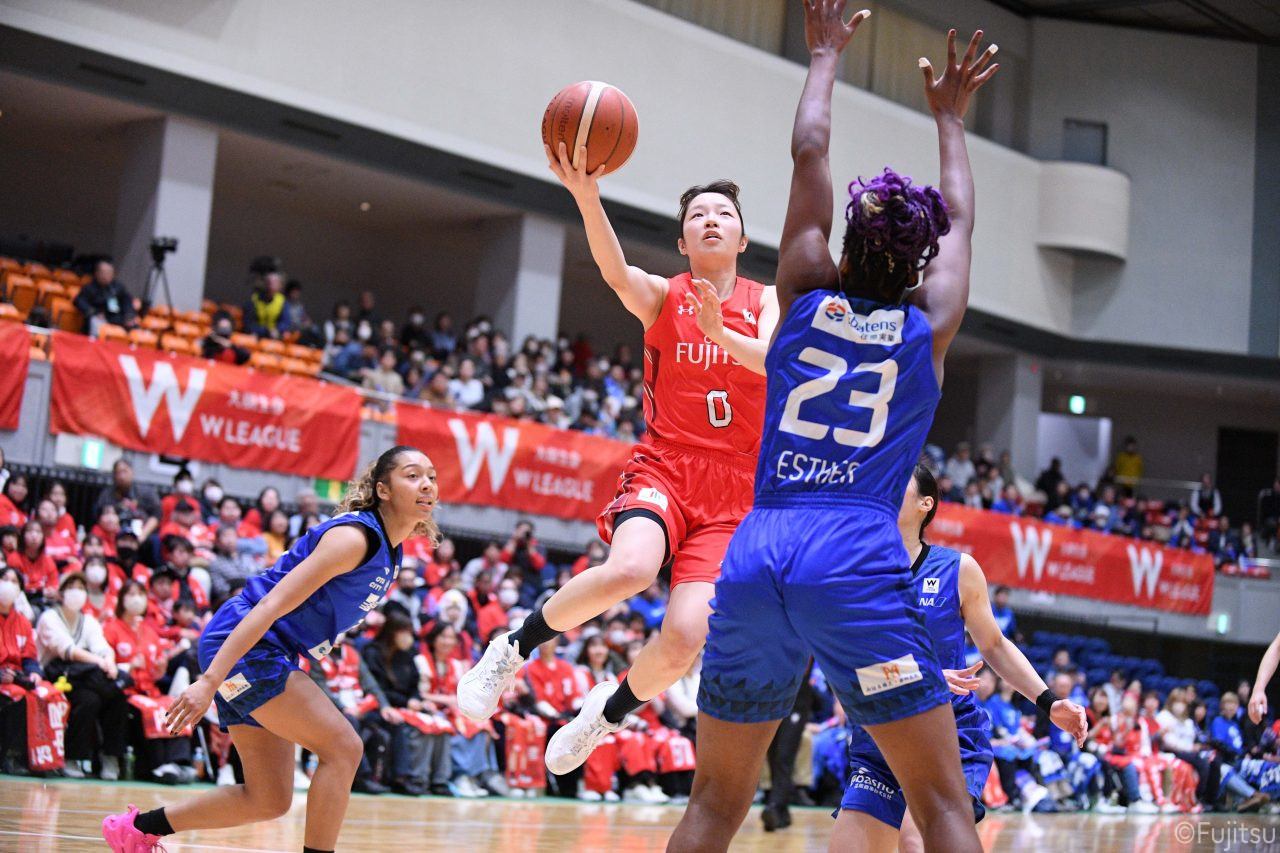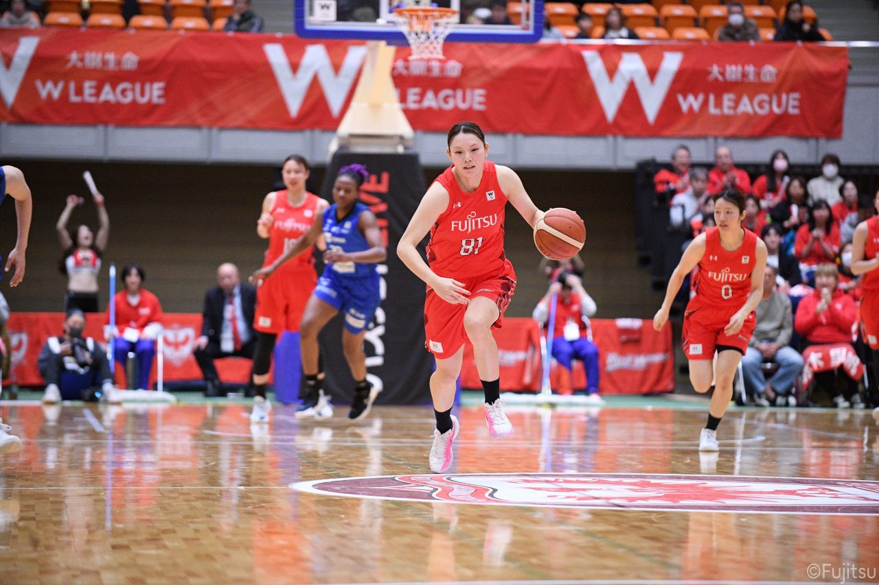 Wリーグ・レギュラーシーズン再開のゲームは平塚で東京羽田と対戦。スタメンは#7林(咲)、#8テミトペ、#10町田、#25内尾、#52宮澤。#7林(咲)のジャンプシュートで先制すると、#8テミトペが続く。東京羽田に粘り強くついて来られるが、#10町田のジャンプシュートや、#7林(咲)と#52宮澤の3ポイントシュートなどでリードを少しずつ広げる。さらに#25内尾の合わせや、#9赤木のジャンプシュートも決まって、東京羽田にタイムアウトを取らせる。終盤、失点するシーンもあったが、#2林(真)の3ポイントシュートと、#81宮下から#22エブリンにつながるプレーで得点し、23-15で第1Qを終える。