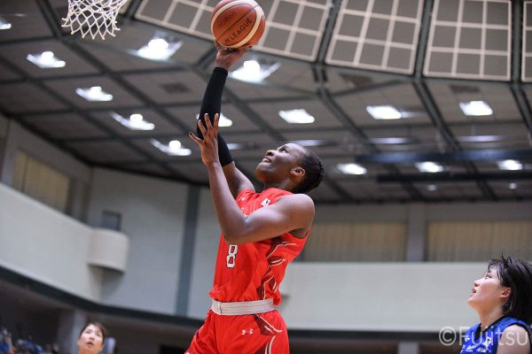 失点からスタートした第2Qだったが、#81宮下のフリースローで返すと、#0山田がドライブからのバスケットカウントを決める。その後は失点こそしないものの、得点もあげられず、タイムアウトで流れを変えようとする。直後に失点したが、#81宮下の3ポイントシュートで二桁のリードを保つ。しかしそこから約3分間、得点が止まってしまい、その間に4連続失点。終盤、#8テミトペと#10町田がフリースローで得点をつなぐと、残り2分を切ったところからは、#8テミトペのリバウンドシュートを皮切りに、#25内尾の速攻、#7林(咲)のバスケットカウントでリードを再び二桁に押し戻す。最後は#22エブリンがバスケットカウントを決めて、42-29で前半を折り返す。