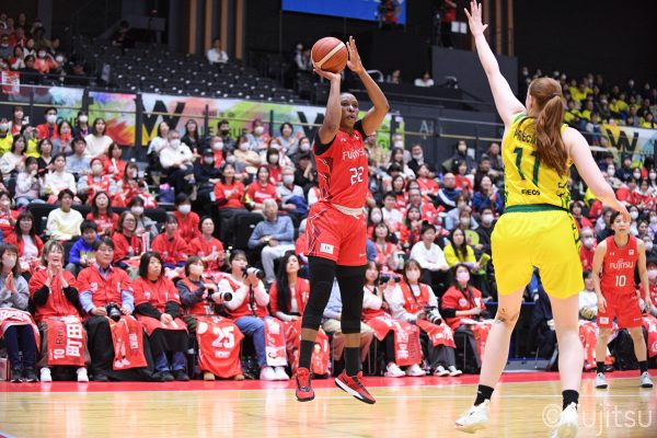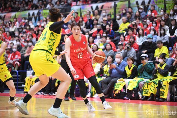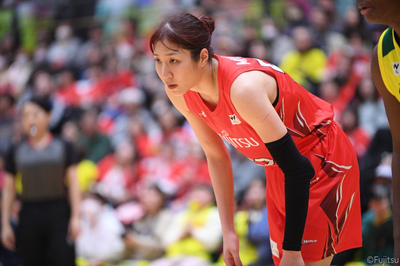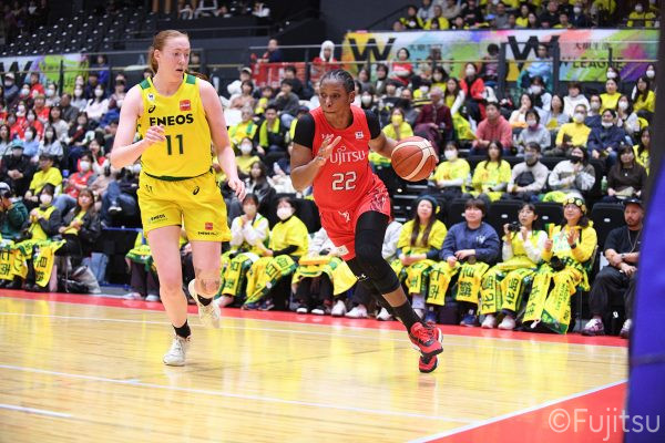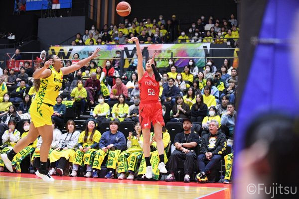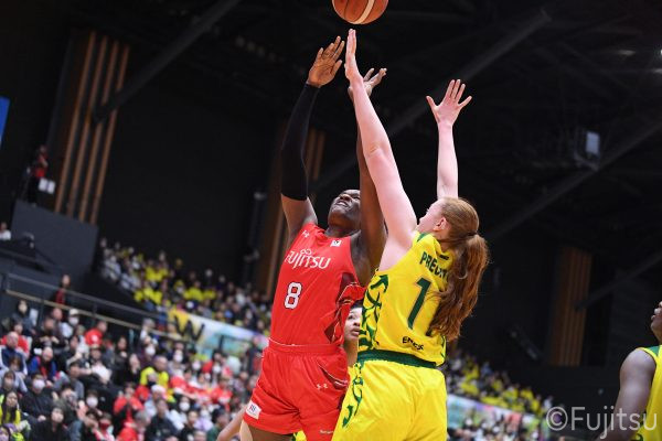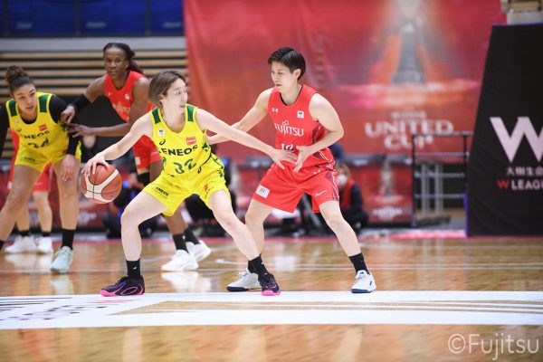 ユナイテッドカップの準決勝はENEOSとの対戦。スタメンは#2 林(真)、#8テミトペ、#10町田、#11前澤、#52宮澤。いきなり0-8と先行される。#11前澤のジャンプシュート、#8テミトペのポストプレーで返し、さらに#52宮澤も3ポイントシュートで続くが、リズムをつかみきれない。それでも#10町田と#22エブリンの連係や、#11前澤から#52宮澤につながる速攻で粘り強くついていく。終盤には#12奥がドライブからバスケットカウントを決め、アーリーエントリーの#91大脇も続き、#2林(真)はジャンプシュートを決める。最後は#0山田が3ポイントシュートを沈めて、20-20で第1Qを終える。