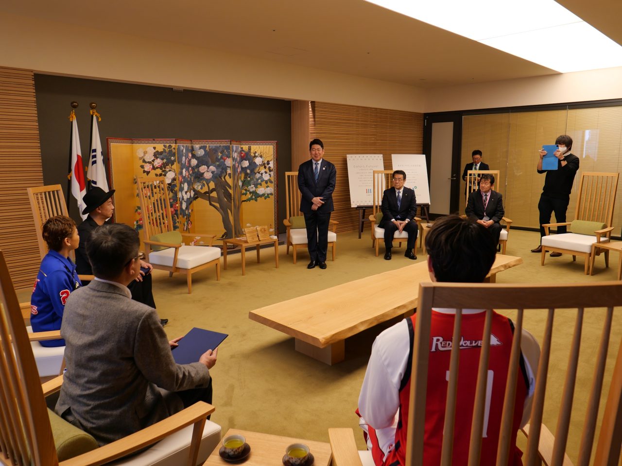 その後、市長と歓談。スポーツの力による地域活性化に関する話で盛り上がりました。