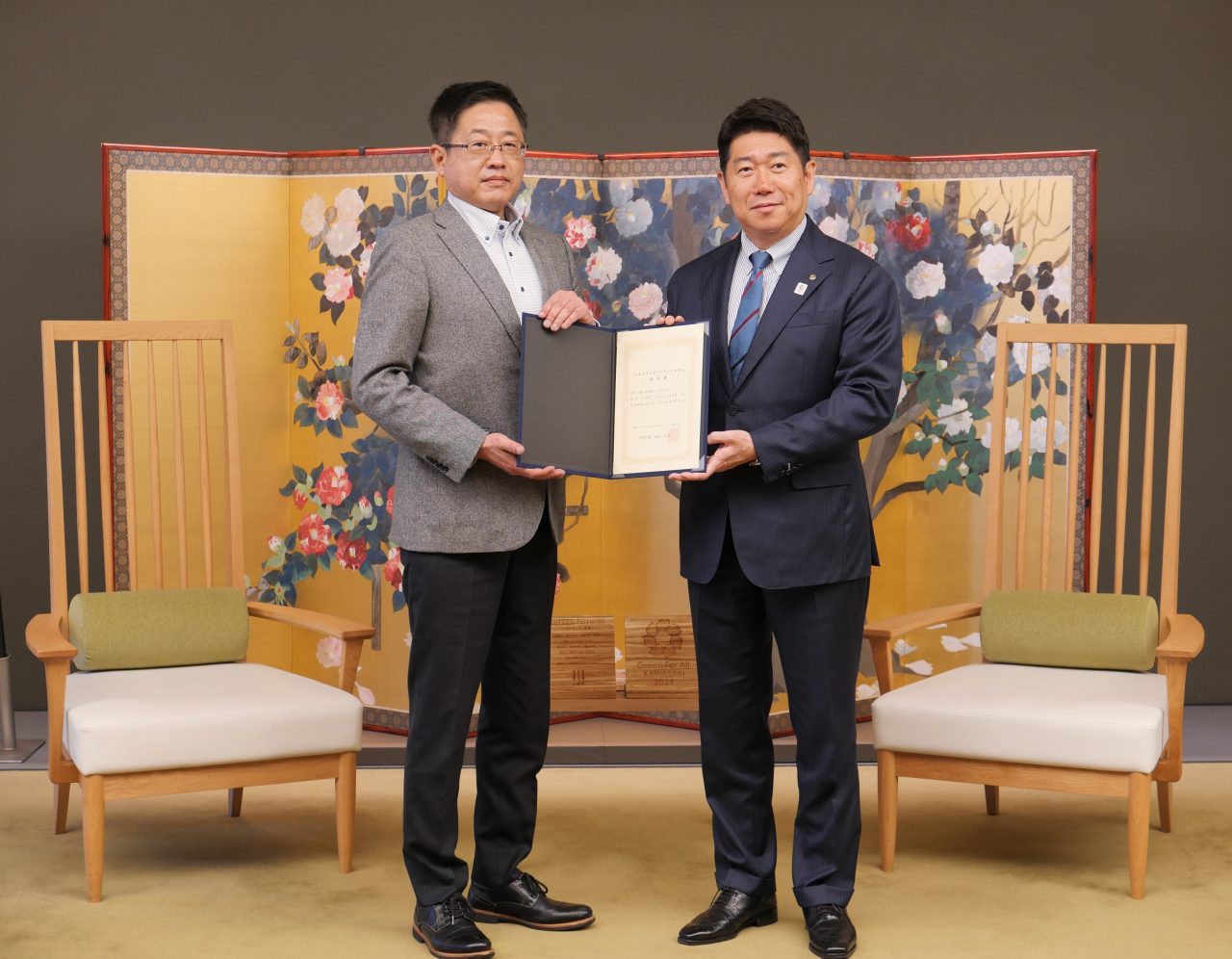 3月21日(金)川崎市役所にて認証式が開催され、式典では川崎市の福田市長から矢野部長に認証書が手渡されたあと、