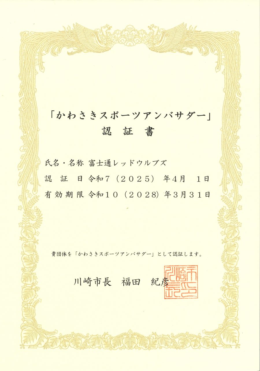 ・令和6年度「かわさきスポーツアンバサダー」認証団体を決定!(川崎市役所ホームページ 2025年3月21日)川崎市報道発表
