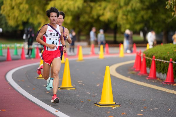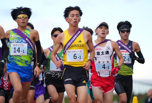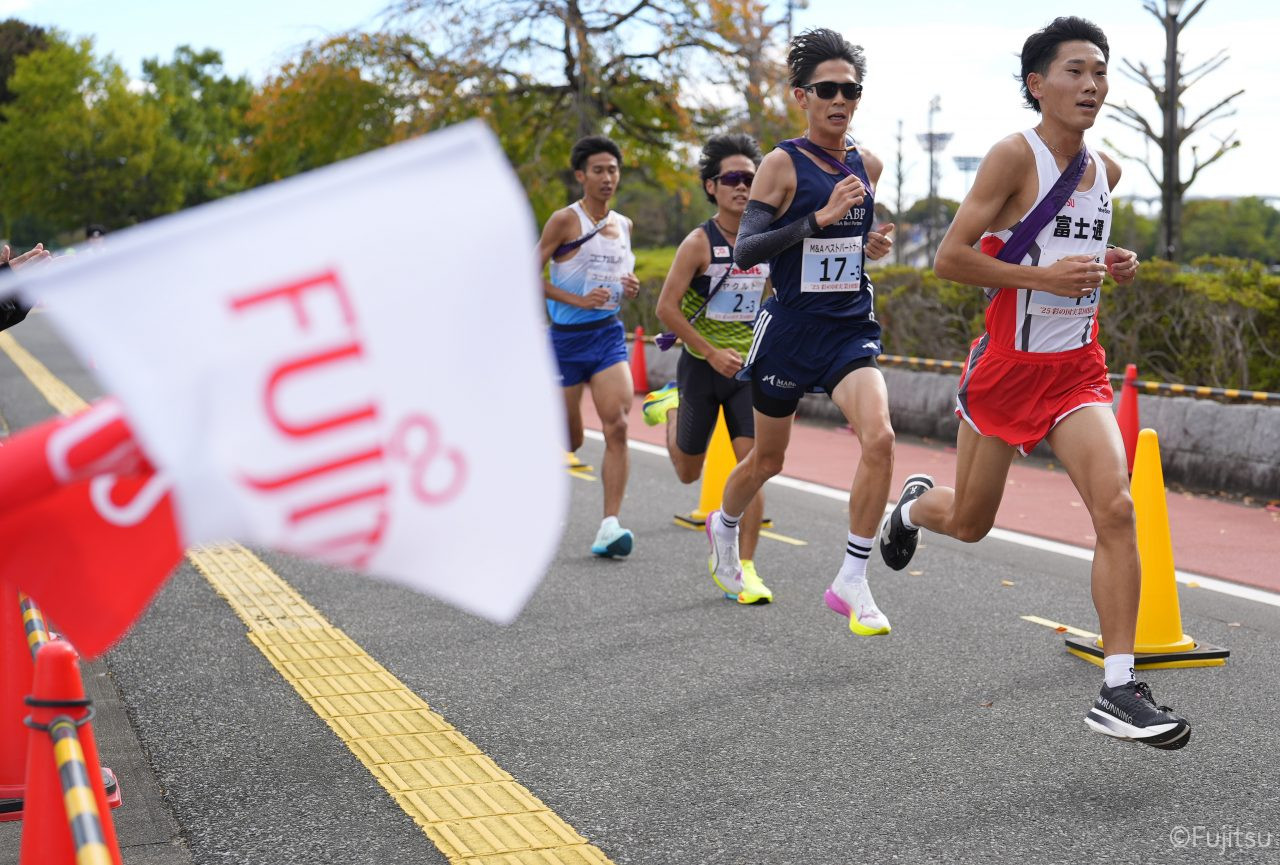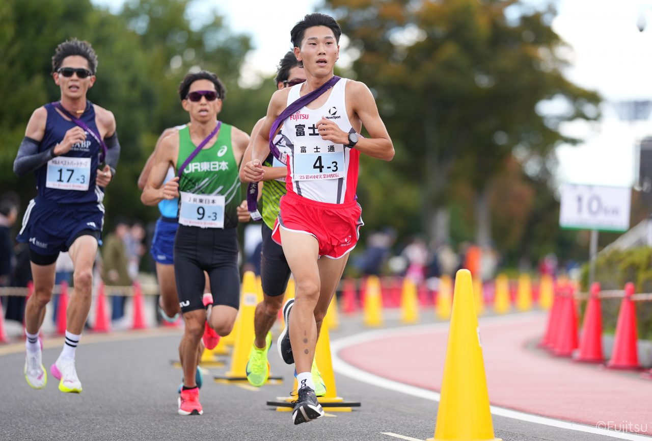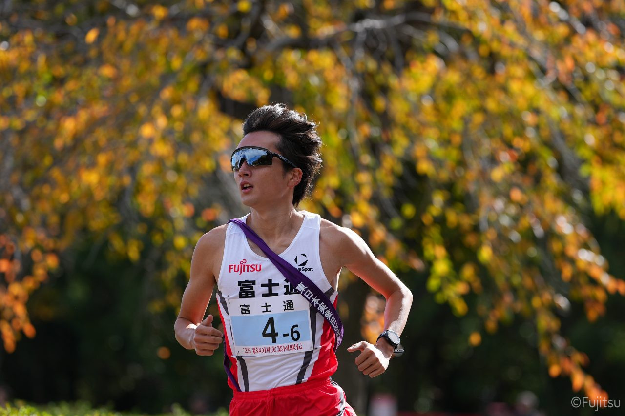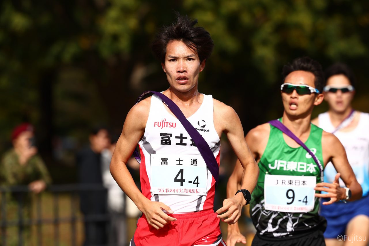 上位13チームに与えられるニューイヤー駅伝の出場権獲得、また昨年連覇が途絶えた東日本実業団駅伝の王座奪還を目指す富士通は、1区に今年3月に行われた「大阪・関西万博開催記念 ACN EXPO EKIDEN 2025」同様、伊豫田達弥を起用。高橋健一監督は「どんな展開になるか予想しにくい部分がありましたが、安定感のある伊豫田なら悪くてもトップと15秒差で帰ってくるだろう」と期待を込めて送り出した。