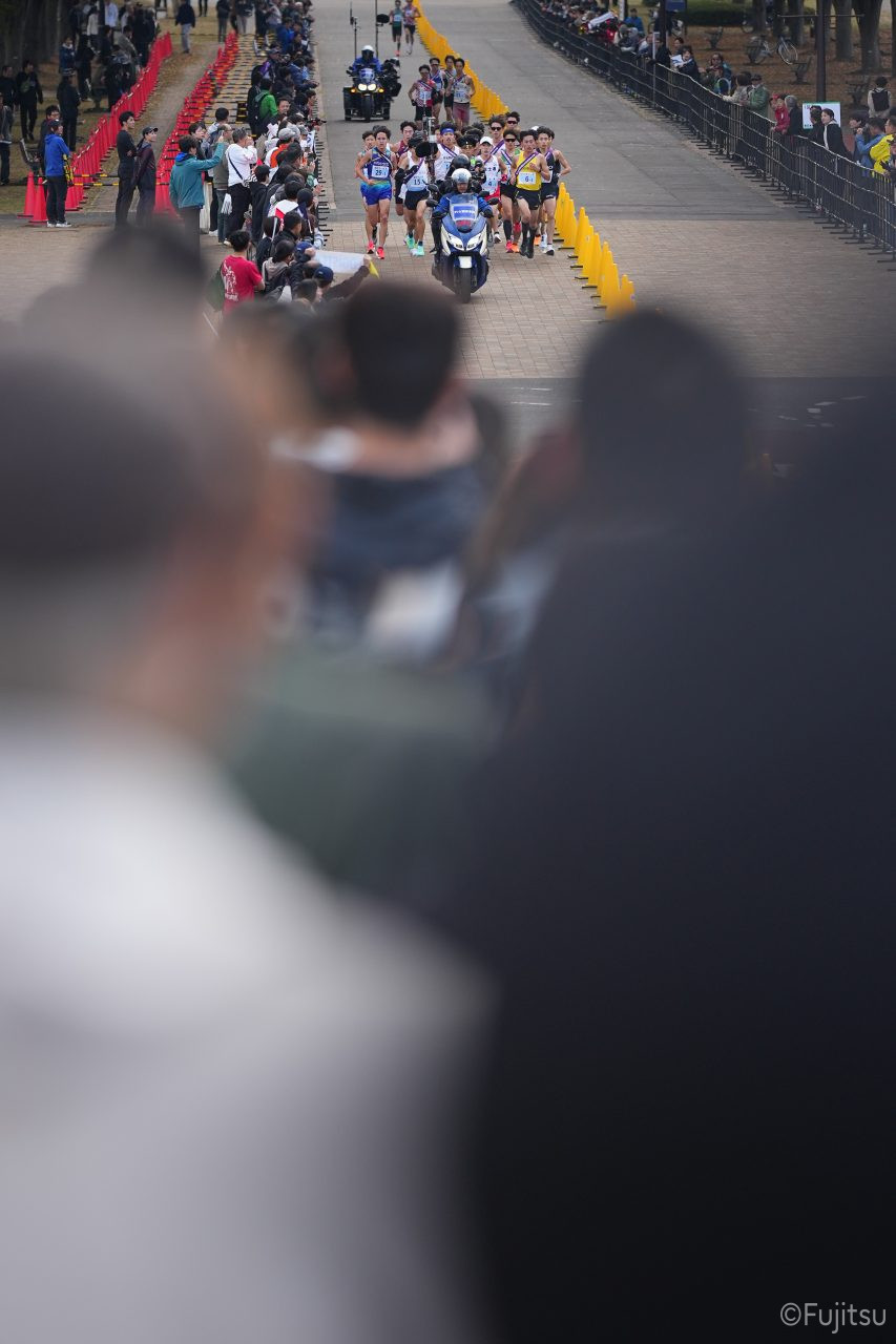アンカーは3年目の小澤大輝。「ひとつでも順位を上げたい」と、中継所で13秒差あった前を走るM&Aベストパートナーズを追った。序盤にその背中をとらえると、中盤には中継所では22秒の差があったJR東日本にも追い付き、3人で5位集団を形成。時折、風が強く吹き付ける中でも、小澤は集団の先頭に立ち積極的な走りを見せる。だが終盤は「相手が強かった」と2人に先行され、7位でのフィニッシュとなった。