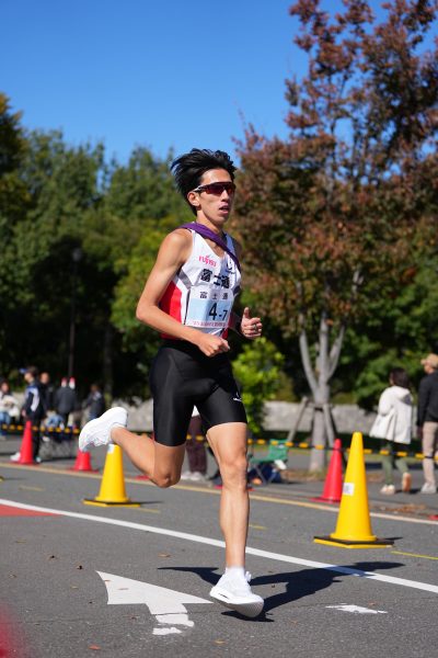 区間賞を獲ることができて、素直に嬉しいです。ただ、設定していたタイムよりも10秒程度遅く、順位も3位番まで上げたかったという悔しい思いも残りました。前半はややハイペースで入り、後半落ちてしまったのが設定タイムに届かなかった原因です。もう少し粘れていれば、結果は違ったと思います。今後は終盤でも力が抜けずに走れるように、足の土台作りをテーマに取り組みたいです。