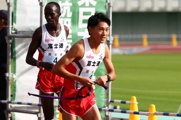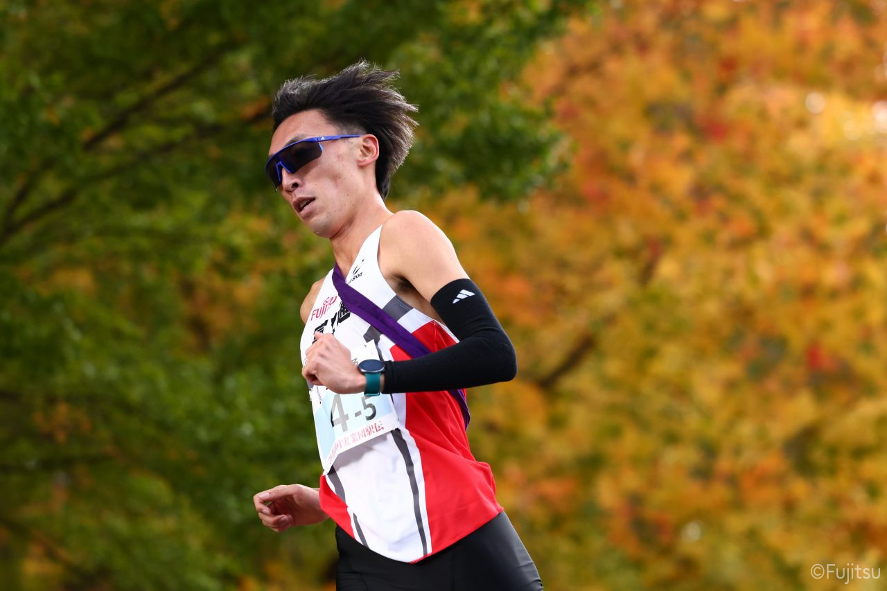 高橋監督から1区で行くと言われて、いろいろな展開があると想定してきましたが、思ったより体が動きませんでした。課題は、終盤の駆け引きです。最初のスパートには対応できましたが、そこで力を使ってしまい、2度目のペースアップにはついていけませんでした。練習を積むことはもちろんですが、もっと強い気持ちを持つことも必要だと感じています。夏合宿を経て、昨年よりもコンディションは上がっていると実感しています。ニューイヤー駅伝のメンバー争いは激しくなりますが、チームに貢献できるように、もっともっと状態を上げていきたいです。